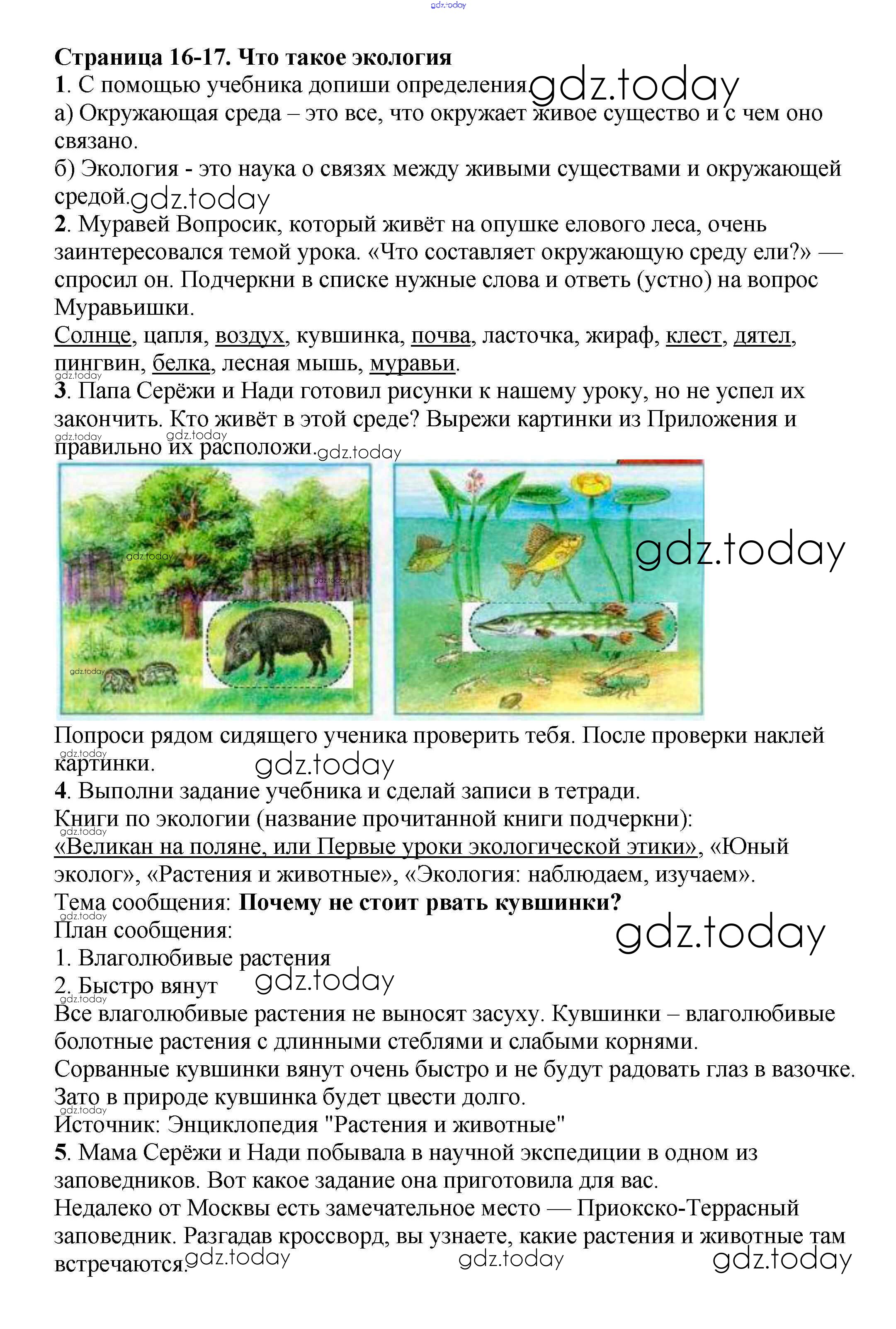 Ответы к Ответы к части 1. Страницы 16 Рабочей тетради по Окружающему миру для 3 класса Плешаков Просвещение Школа России 2017