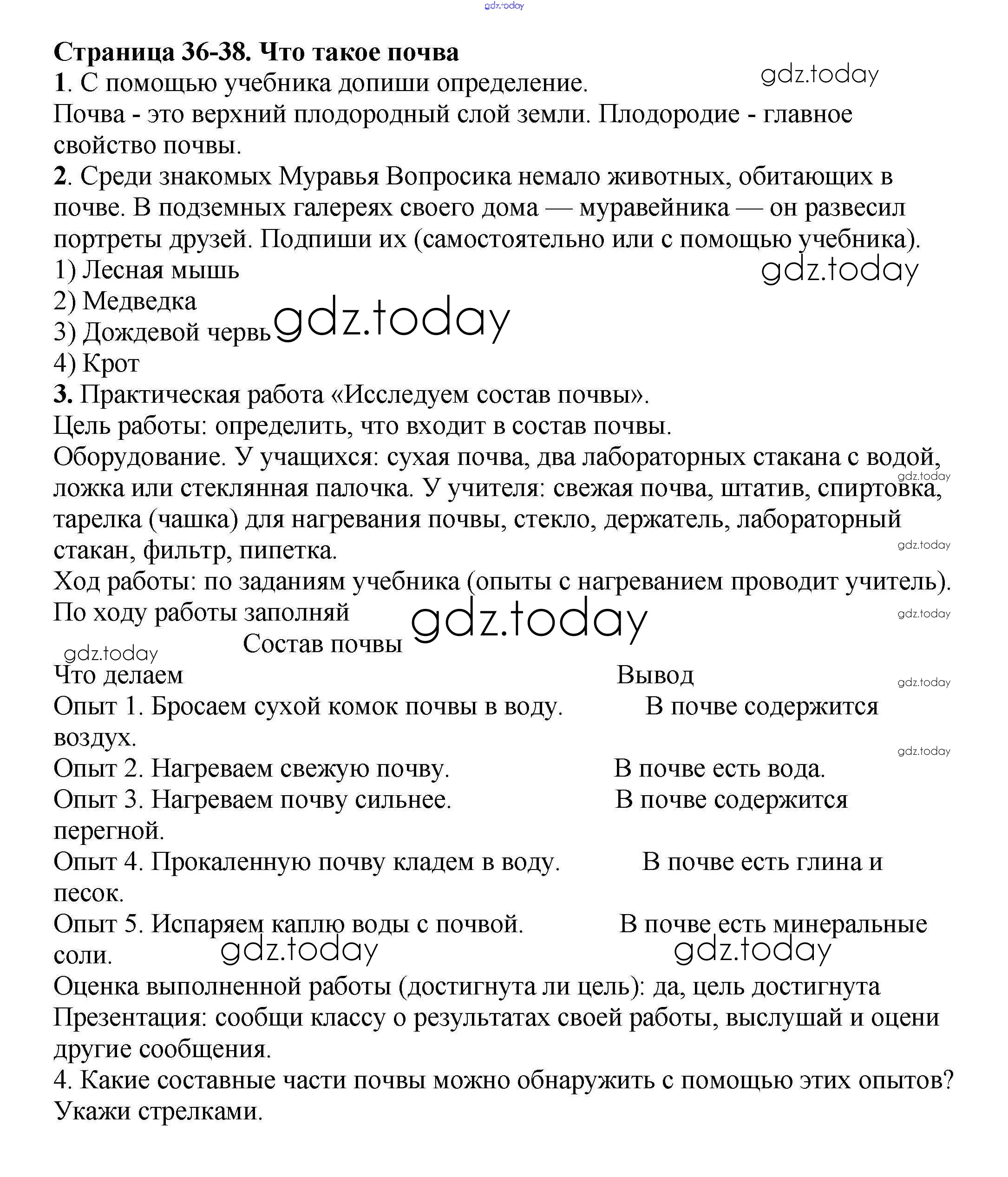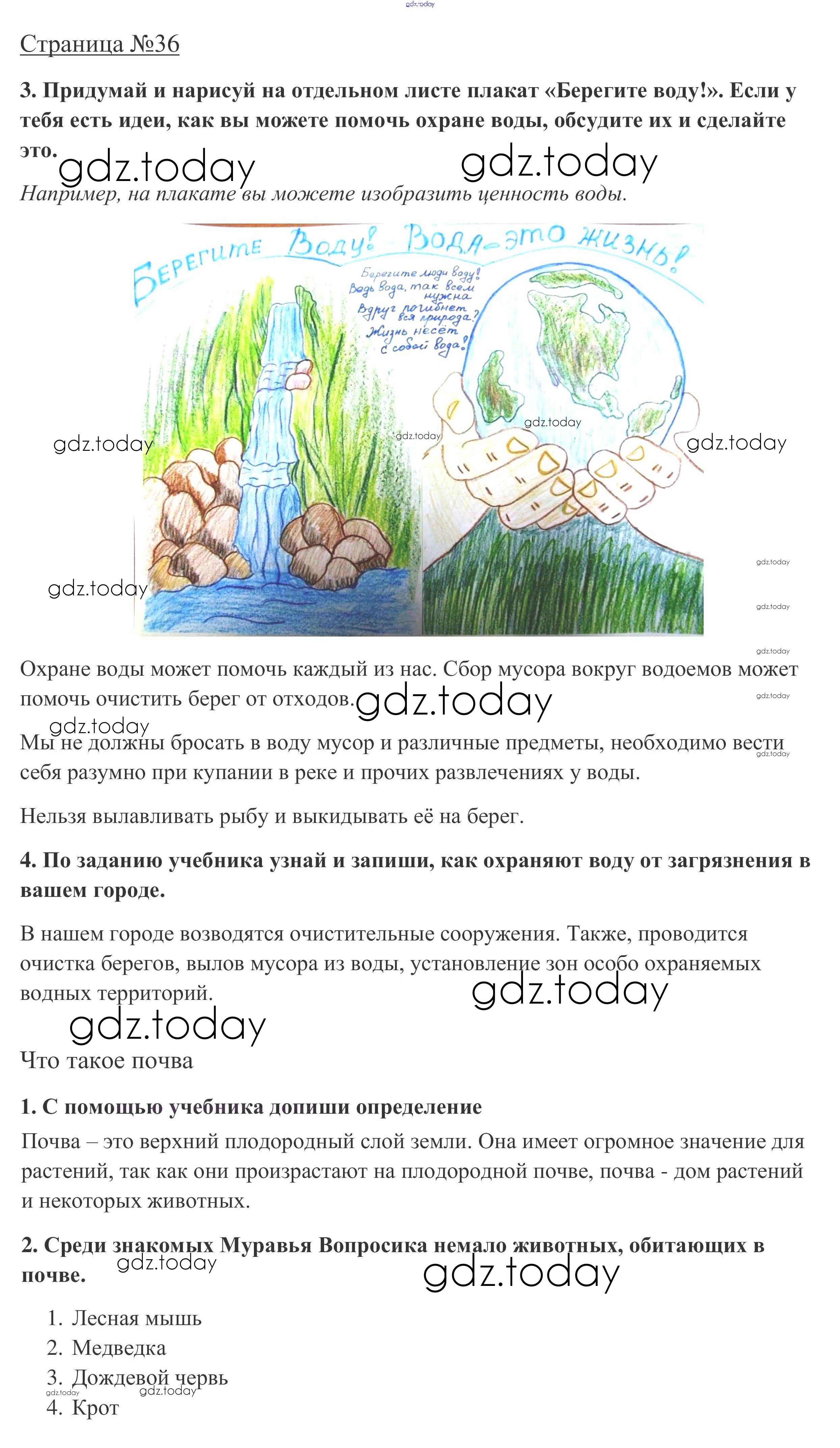 На страницах сайта gdz.today вы найдете учебный и вспомогательный материал, направленный на улучшения знаний школьной программы. ГДЗ - онлайн мир знаний Ответы к части 1. Страницы 36 Рабочей тетради по Окружающему миру для 3 класса Плешаков Просвещение Школа России 2017