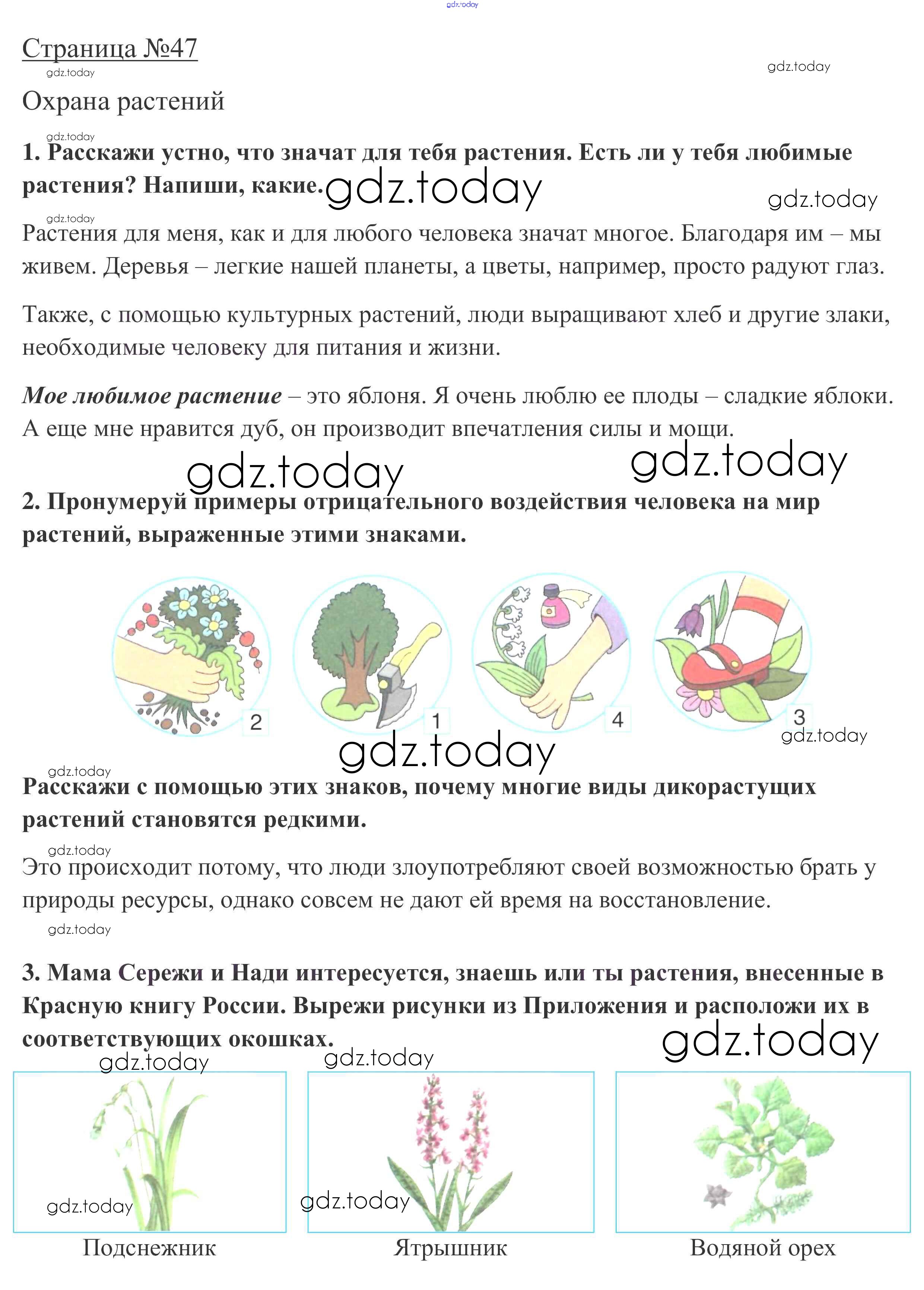 На страницах сайта gdz.today вы найдете учебный и вспомогательный материал, направленный на улучшения знаний школьной программы. ГДЗ - онлайн мир знаний Ответы к части 1. Страницы 47 Рабочей тетради по Окружающему миру для 3 класса Плешаков Просвещение Школа России 2017