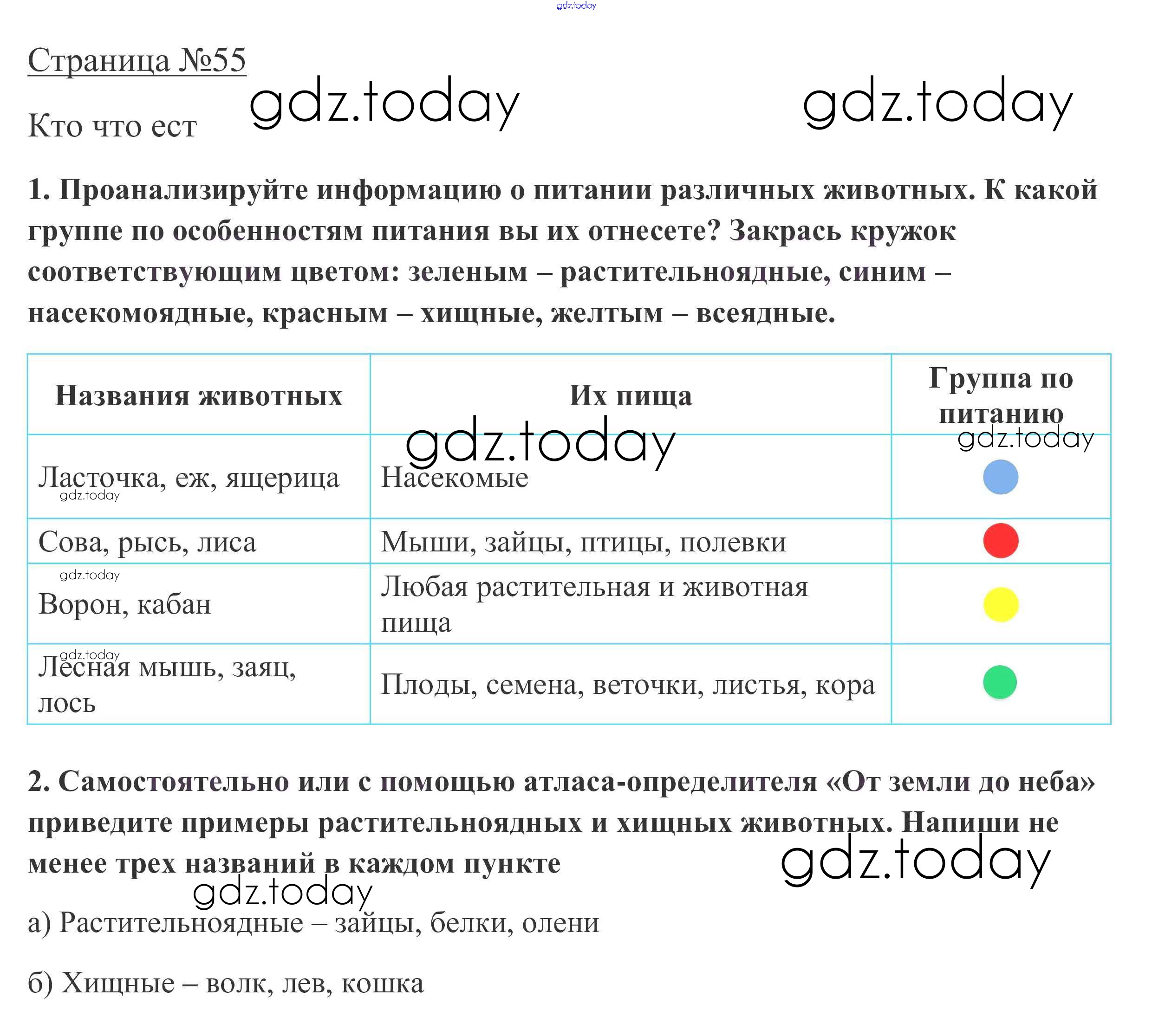 На страницах сайта gdz.today вы найдете учебный и вспомогательный материал, направленный на улучшения знаний школьной программы. ГДЗ - онлайн мир знаний Ответы к части 1. Страницы 55 Рабочей тетради по Окружающему миру для 3 класса Плешаков Просвещение Школа России 2017