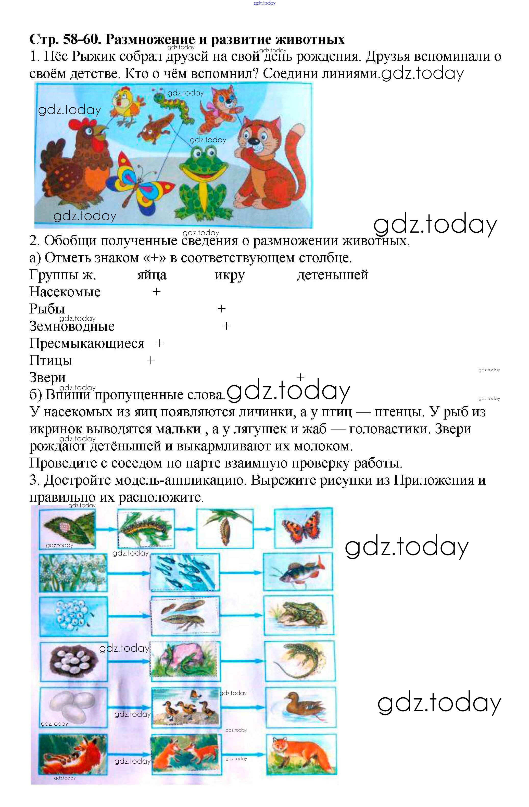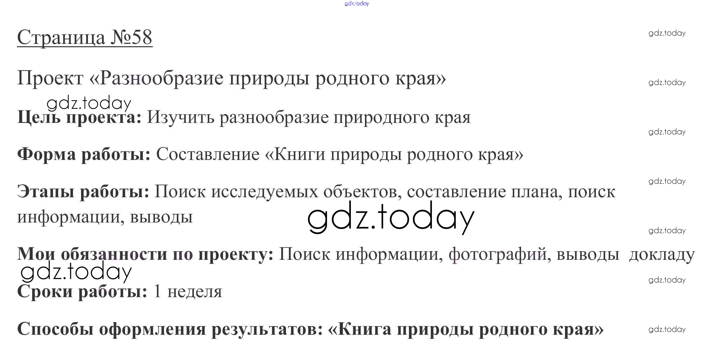 На страницах сайта gdz.today вы найдете учебный и вспомогательный материал, направленный на улучшения знаний школьной программы. ГДЗ - онлайн мир знаний Ответы к части 1. Страницы 58 Рабочей тетради по Окружающему миру для 3 класса Плешаков Просвещение Школа России 2017
