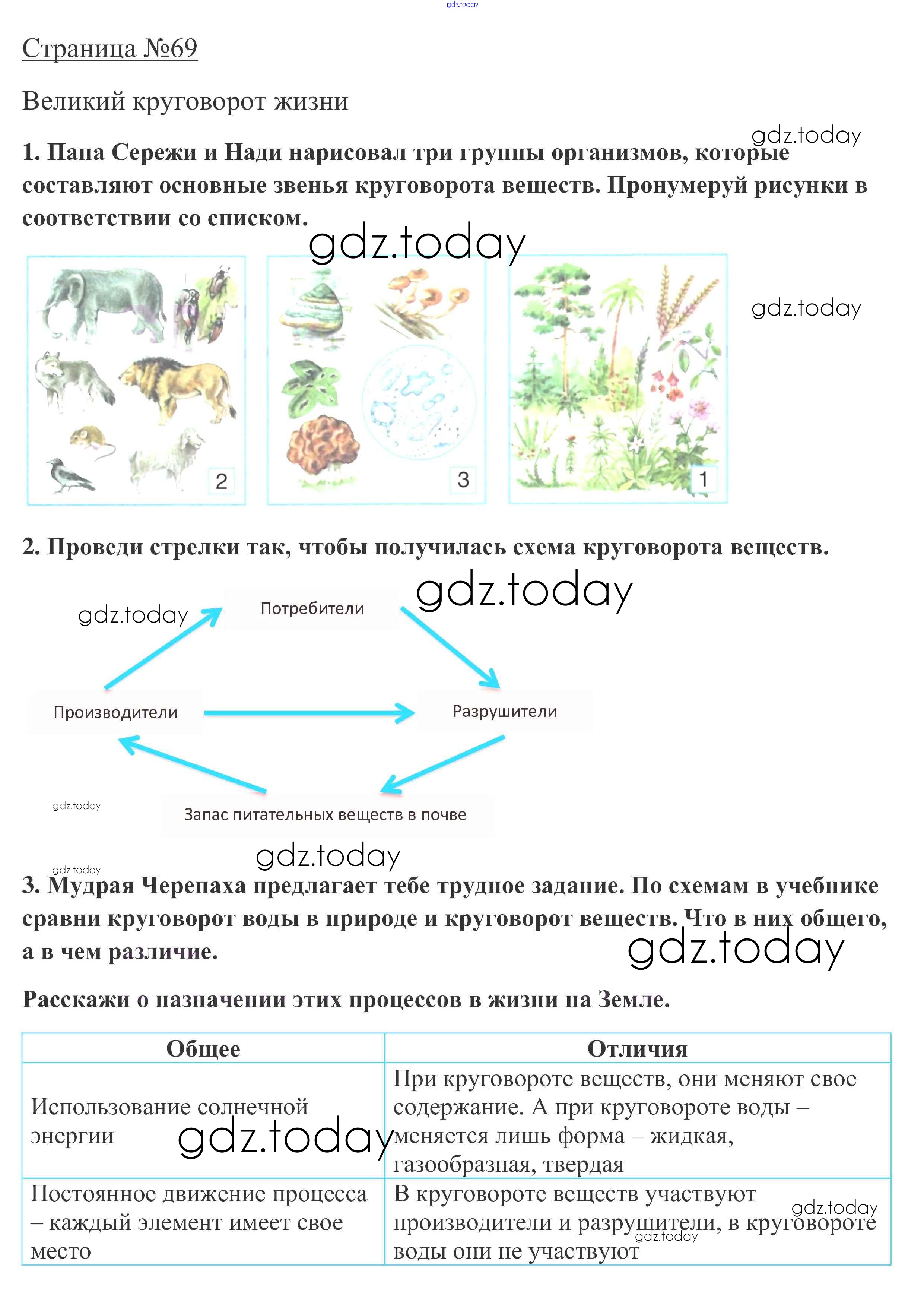На страницах сайта gdz.today вы найдете учебный и вспомогательный материал, направленный на улучшения знаний школьной программы. ГДЗ - онлайн мир знаний Ответы к части 1. Страницы 69 Рабочей тетради по Окружающему миру для 3 класса Плешаков Просвещение Школа России 2017