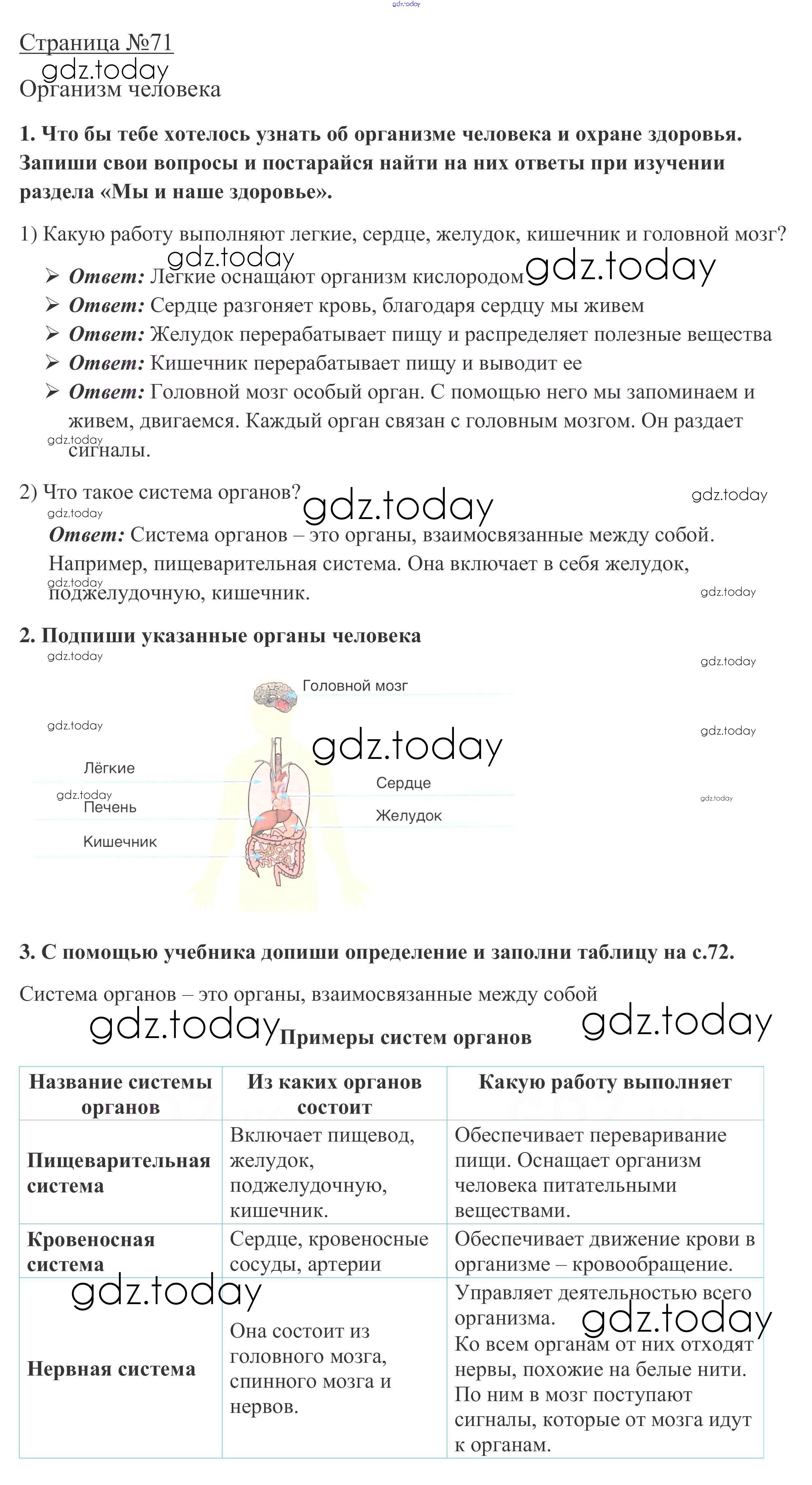 На страницах сайта gdz.today вы найдете учебный и вспомогательный материал, направленный на улучшения знаний школьной программы. ГДЗ - онлайн мир знаний Ответы к части 1. Страницы 71 Рабочей тетради по Окружающему миру для 3 класса Плешаков Просвещение Школа России 2017