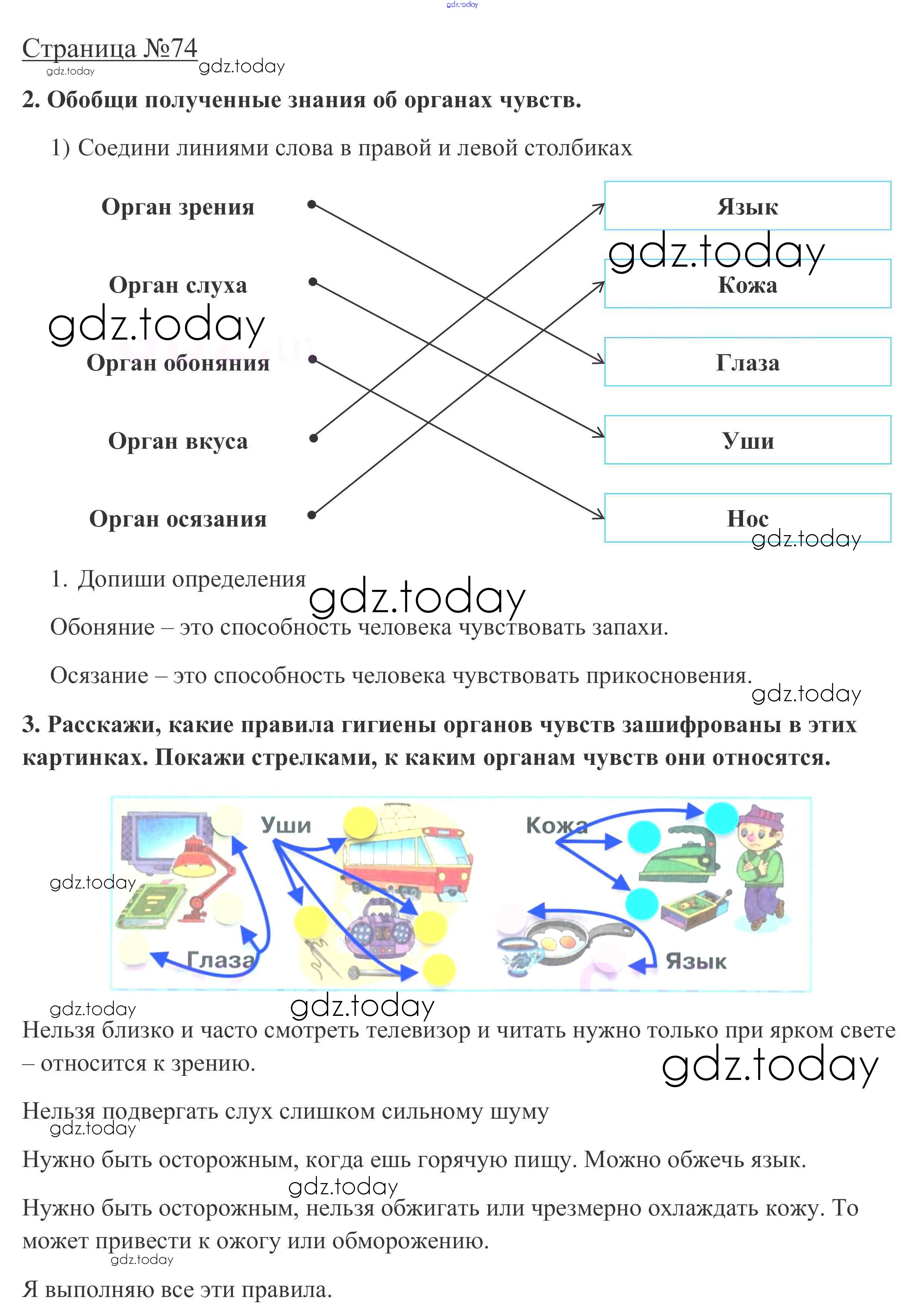 На страницах сайта gdz.today вы найдете учебный и вспомогательный материал, направленный на улучшения знаний школьной программы. ГДЗ - онлайн мир знаний Ответы к части 1. Страницы 74 Рабочей тетради по Окружающему миру для 3 класса Плешаков Просвещение Школа России 2017
