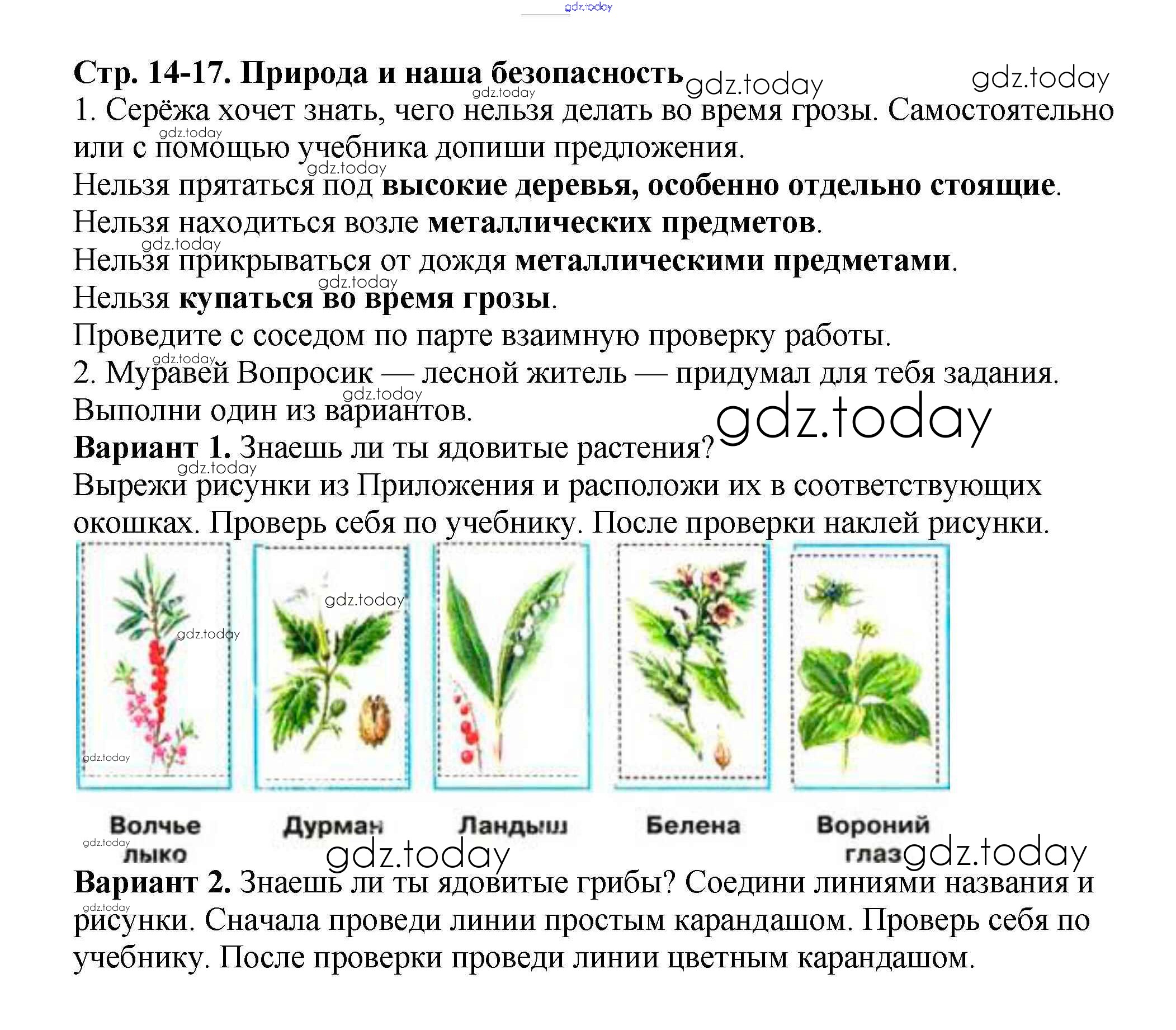На страницах сайта gdz.today вы найдете учебный и вспомогательный материал, направленный на улучшения знаний школьной программы. ГДЗ - онлайн мир знаний Ответы к части 2. Страницы 14 Рабочей тетради по Окружающему миру для 3 класса Плешаков Просвещение Школа России 2017