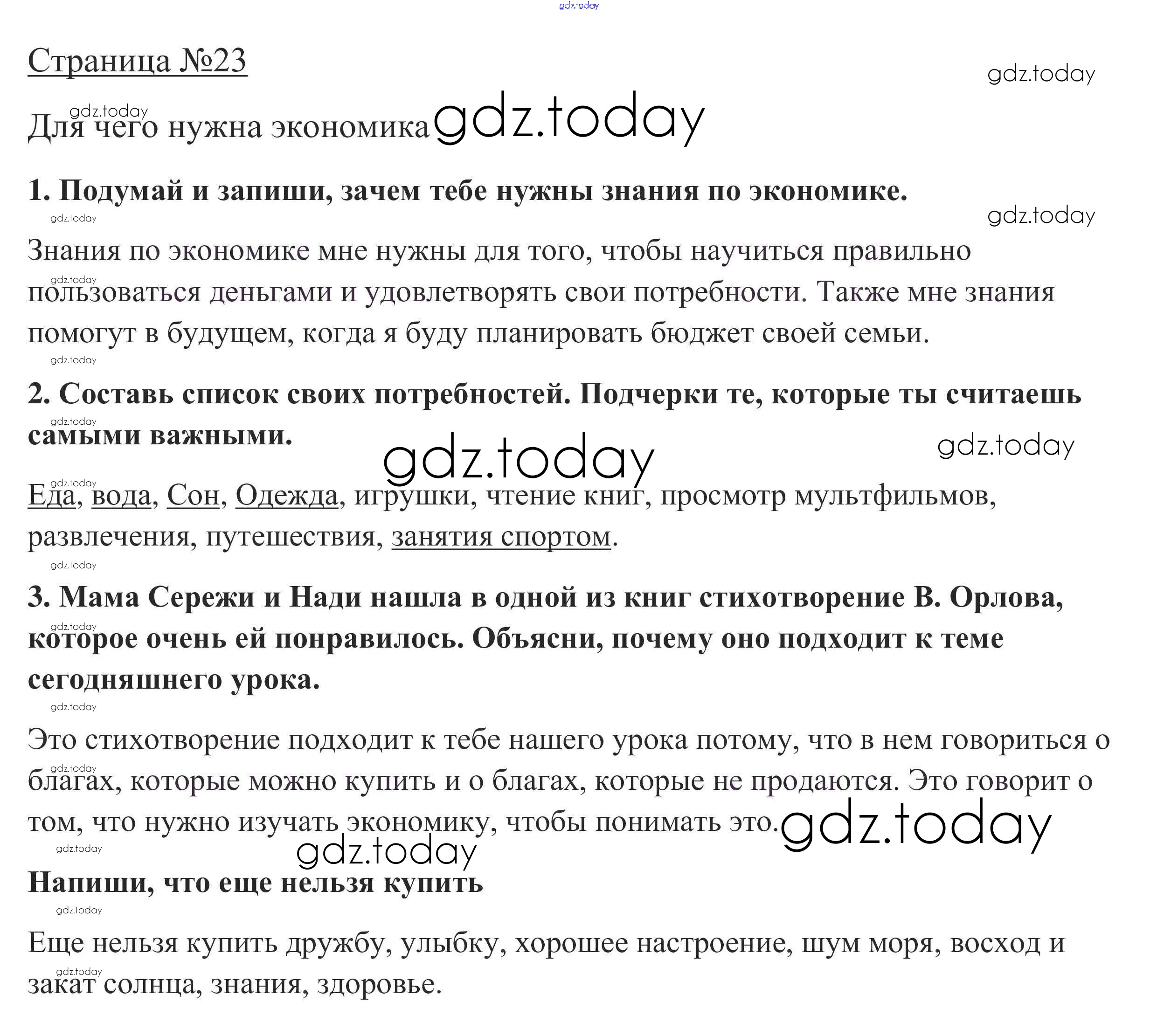 На страницах сайта gdz.today вы найдете учебный и вспомогательный материал, направленный на улучшения знаний школьной программы. ГДЗ - онлайн мир знаний Ответы к части 2. Страницы 23 Рабочей тетради по Окружающему миру для 3 класса Плешаков Просвещение Школа России 2017
