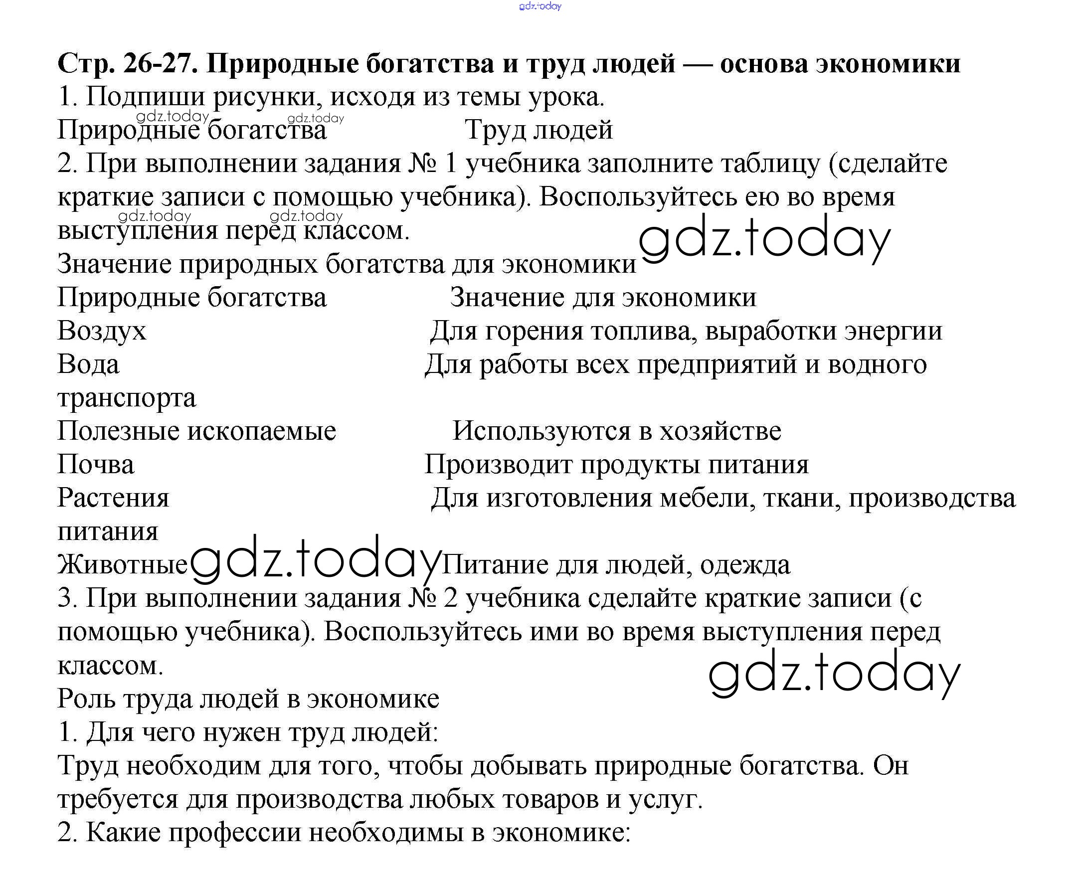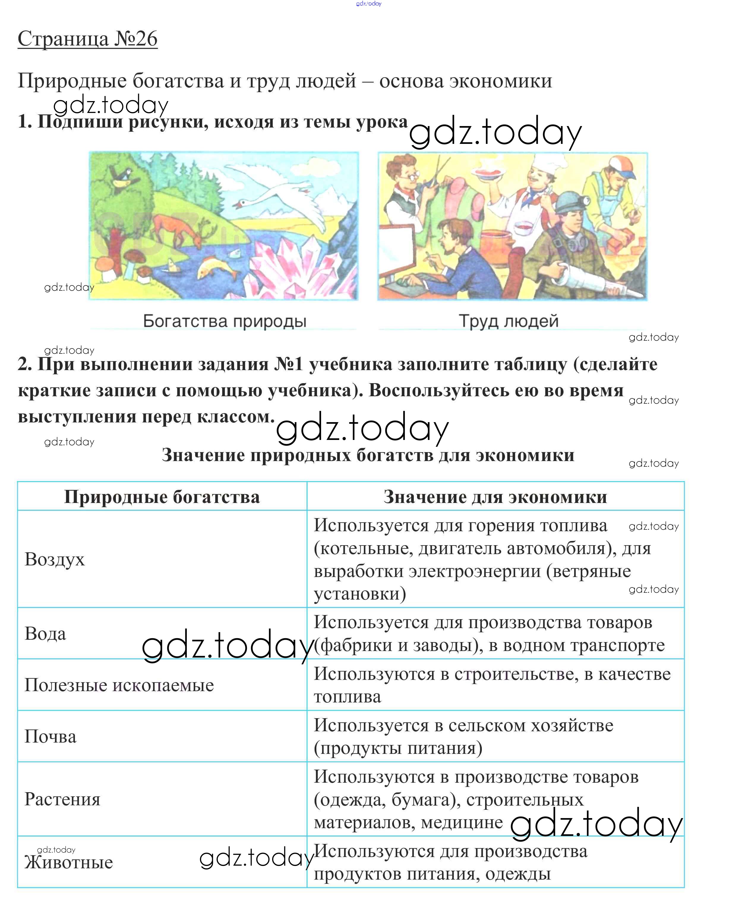 На страницах сайта gdz.today вы найдете учебный и вспомогательный материал, направленный на улучшения знаний школьной программы. ГДЗ - онлайн мир знаний Ответы к части 2. Страницы 26 Рабочей тетради по Окружающему миру для 3 класса Плешаков Просвещение Школа России 2017