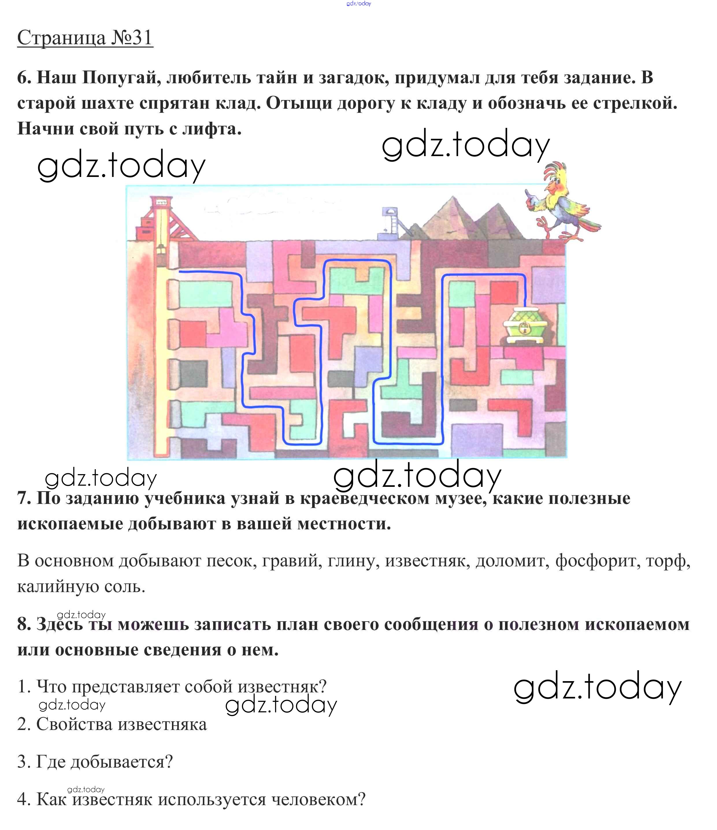На страницах сайта gdz.today вы найдете учебный и вспомогательный материал, направленный на улучшения знаний школьной программы. ГДЗ - онлайн мир знаний Ответы к части 2. Страницы 31 Рабочей тетради по Окружающему миру для 3 класса Плешаков Просвещение Школа России 2017