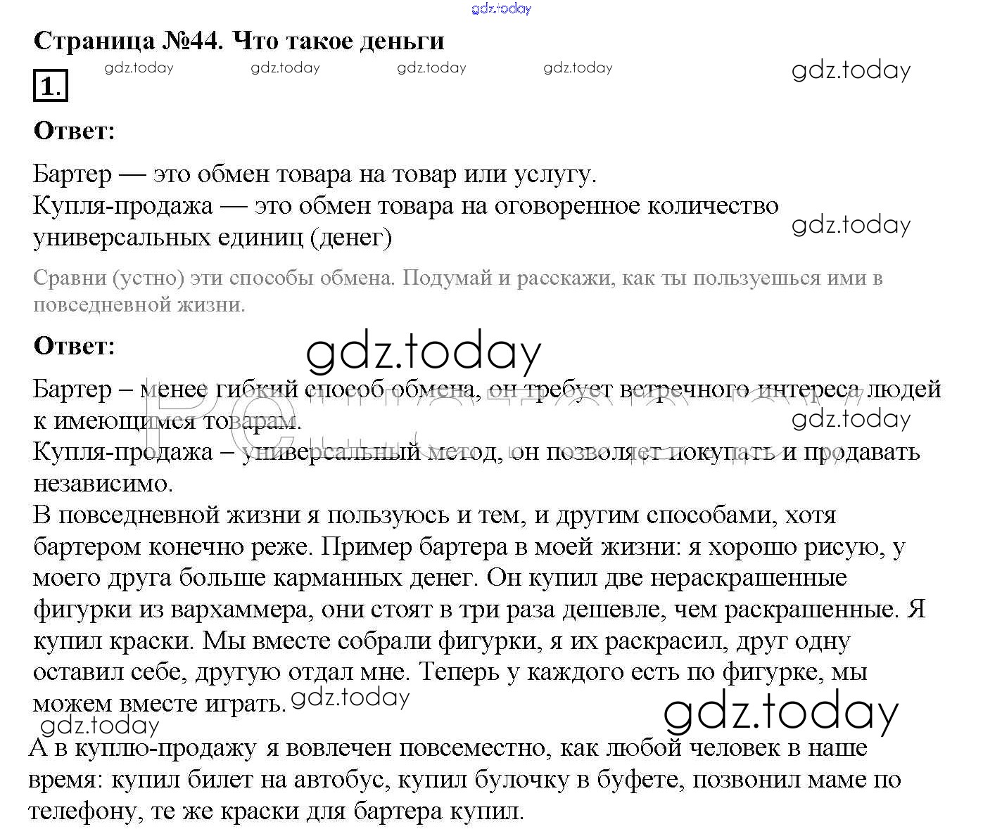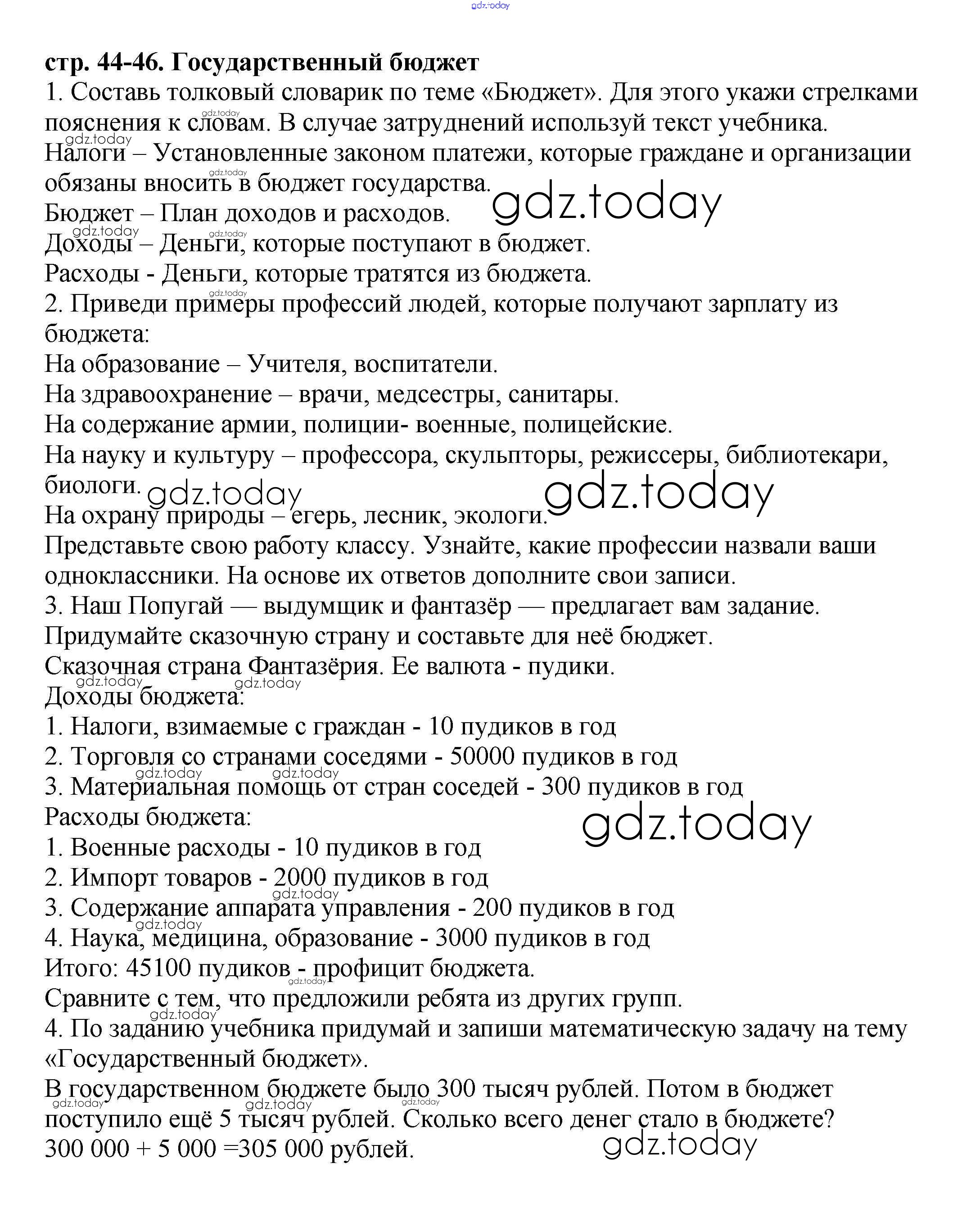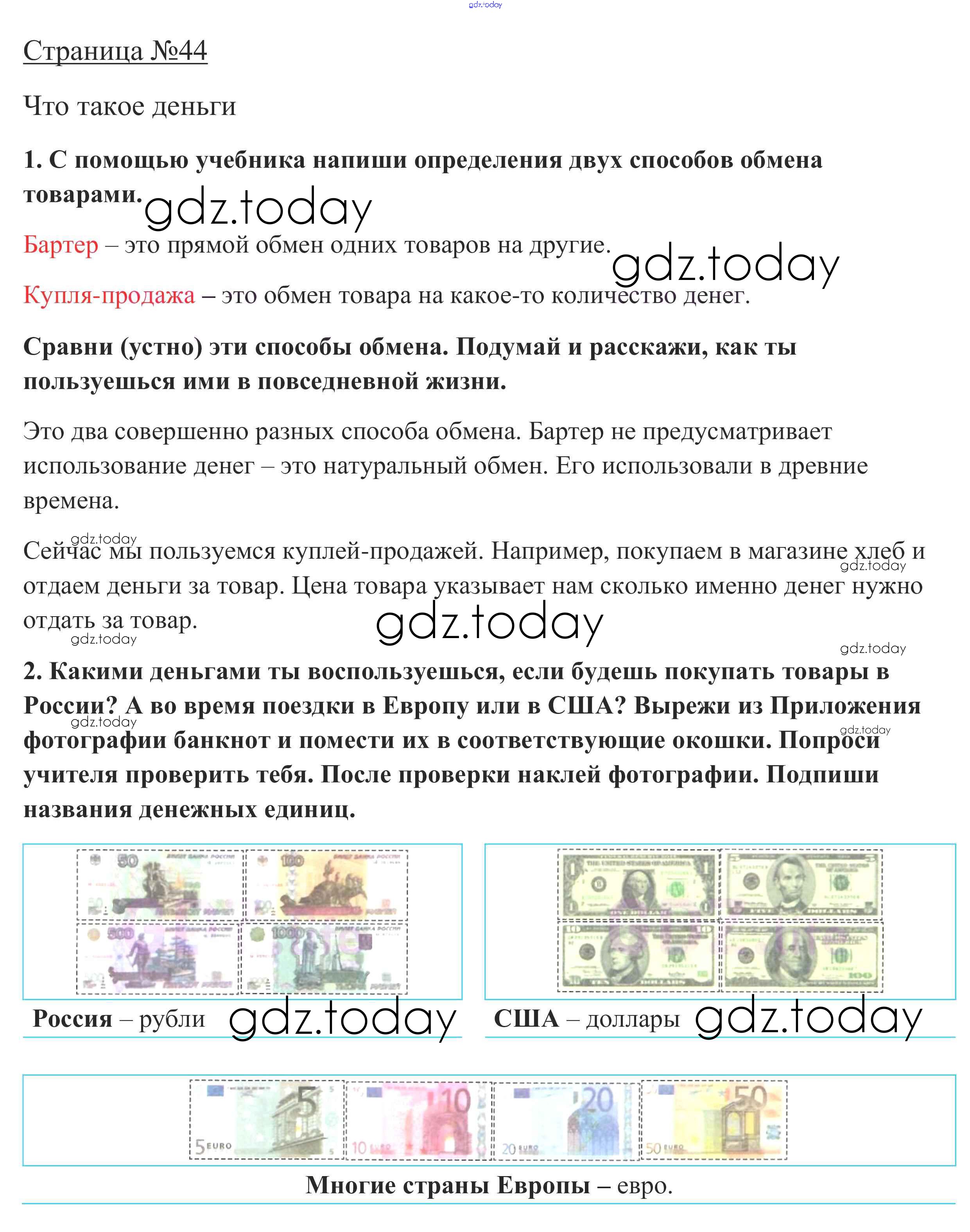 На страницах сайта gdz.today вы найдете учебный и вспомогательный материал, направленный на улучшения знаний школьной программы. ГДЗ - онлайн мир знаний Ответы к части 2. Страницы 44 Рабочей тетради по Окружающему миру для 3 класса Плешаков Просвещение Школа России 2017