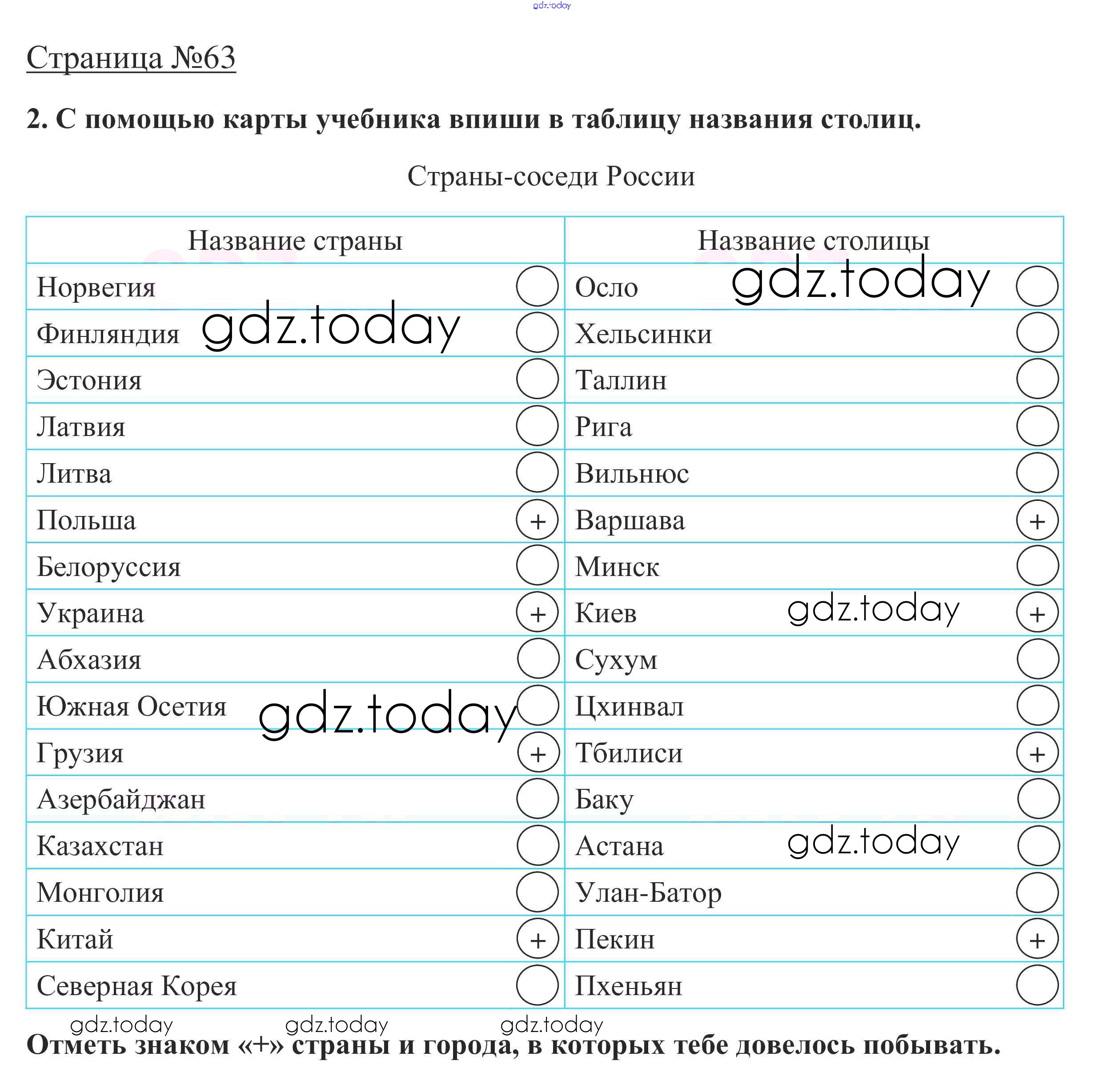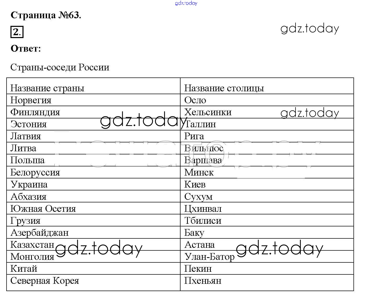 На страницах сайта gdz.today вы найдете учебный и вспомогательный материал, направленный на улучшения знаний школьной программы. ГДЗ - онлайн мир знаний Ответы к части 2. Страницы 63 Рабочей тетради по Окружающему миру для 3 класса Плешаков Просвещение Школа России 2017