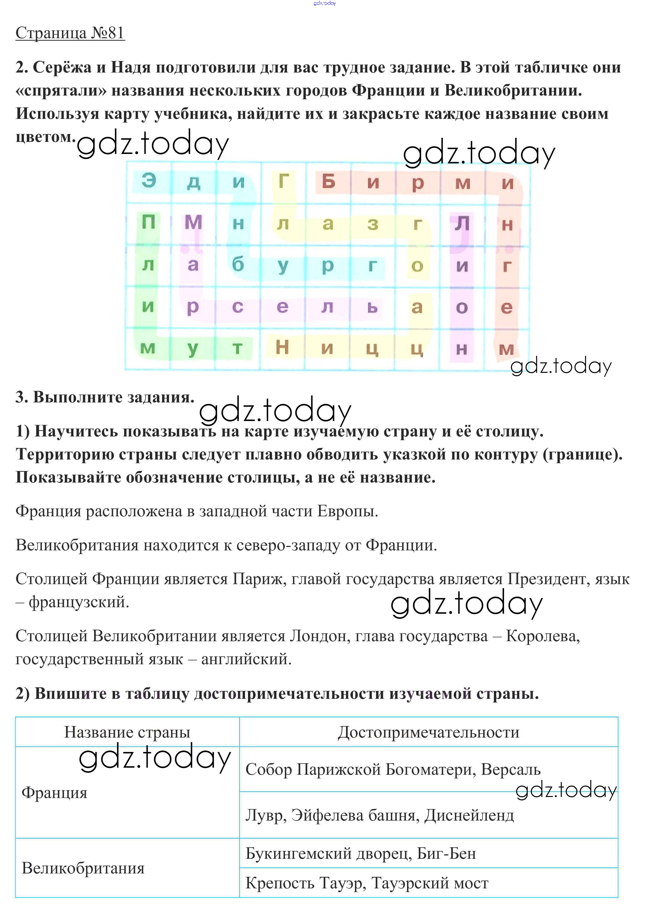 На страницах сайта gdz.today вы найдете учебный и вспомогательный материал, направленный на улучшения знаний школьной программы. ГДЗ - онлайн мир знаний Ответы к части 2. Страницы 81 Рабочей тетради по Окружающему миру для 3 класса Плешаков Просвещение Школа России 2017