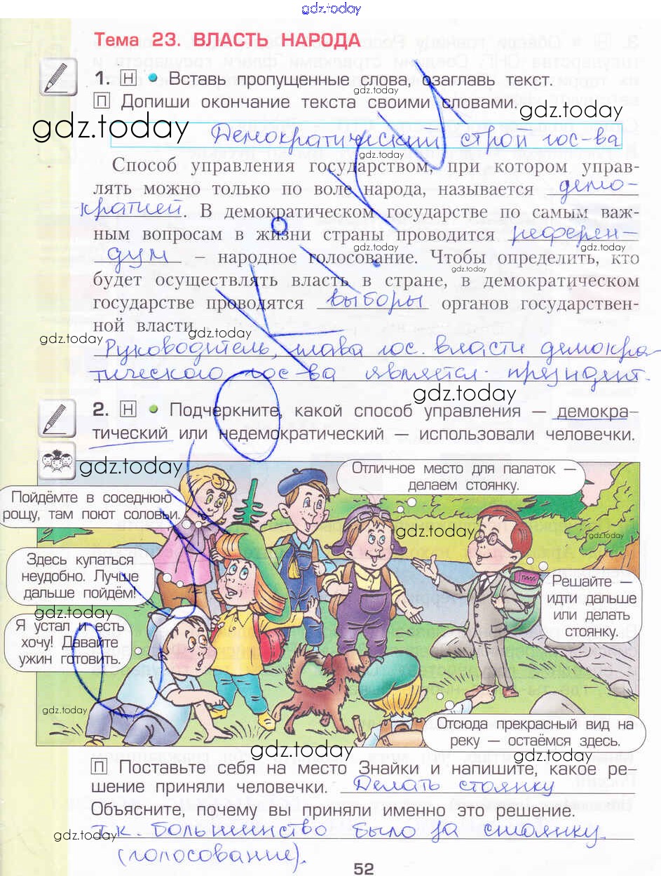 На страницах сайта gdz.today вы найдете учебный и вспомогательный материал, направленный на улучшения знаний школьной программы. ГДЗ - онлайн мир знаний Решение к части 2 (страницы) 52 Рабочей тетради по Окружающему миру для 3 класса Вахрушев, Бурский Баласс Школа 2100 2017