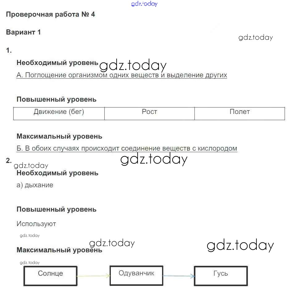 Ответы к Решение к проверочной работе №4 (варианты) 1 Проверочным и контрольным работам по Окружающему миру для 3 класса Вахрушев, Бурский Баласс Школа 2100 2009
