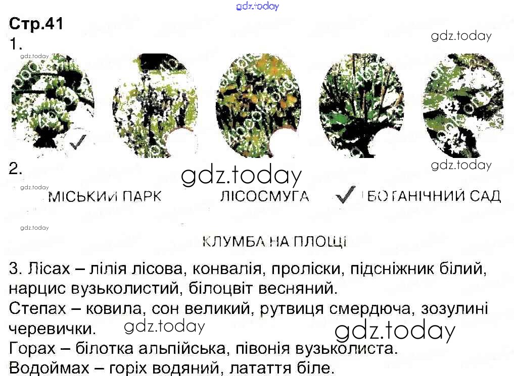 На страницах сайта gdz.today вы найдете учебный и вспомогательный материал, направленный на улучшения знаний школьной программы. ГДЗ - онлайн мир знаний Рішення до Сторінки 41 Рабочей тетради по Природоведению для 3 класса Грущинская Освiта 2014