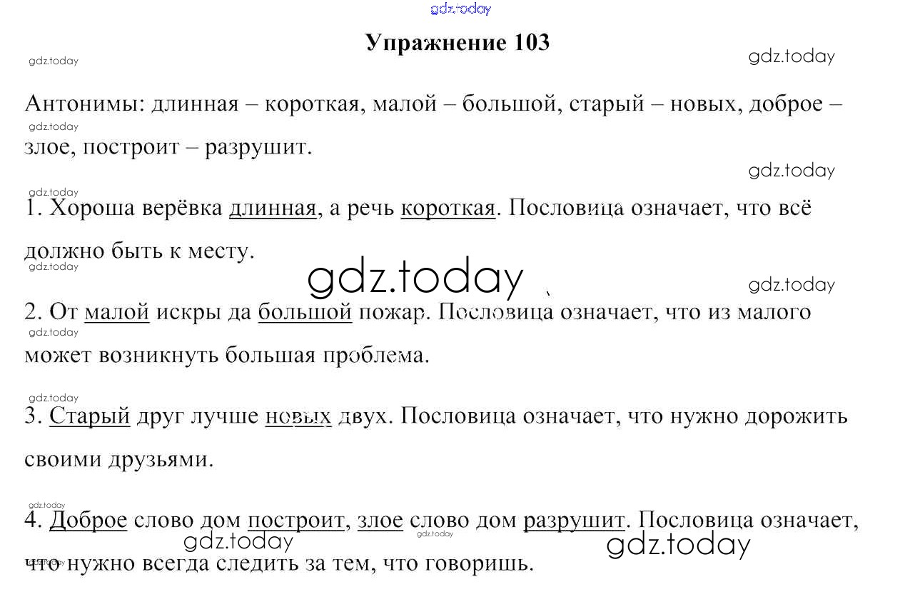 На страницах сайта gdz.today вы найдете учебный и вспомогательный материал, направленный на улучшения знаний школьной программы. ГДЗ - онлайн мир знаний Решение к части 1. Упражнения 103 Учебнику по Русскому языку для 3 класса Антипова, Верниковская Сэр-Вит 2019