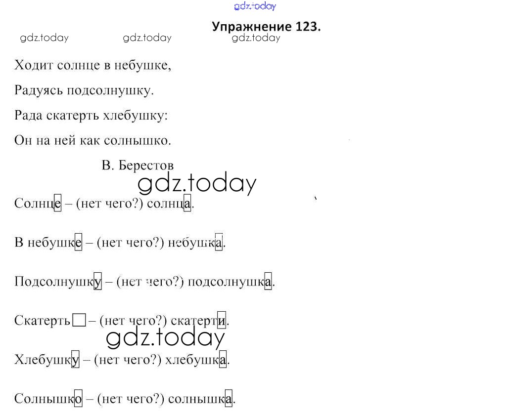 На страницах сайта gdz.today вы найдете учебный и вспомогательный материал, направленный на улучшения знаний школьной программы. ГДЗ - онлайн мир знаний Решение к части 1. Упражнения 123 Учебнику по Русскому языку для 3 класса Антипова, Верниковская Сэр-Вит 2019