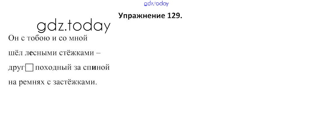 На страницах сайта gdz.today вы найдете учебный и вспомогательный материал, направленный на улучшения знаний школьной программы. ГДЗ - онлайн мир знаний Решение к части 1. Упражнения 129 Учебнику по Русскому языку для 3 класса Антипова, Верниковская Сэр-Вит 2019