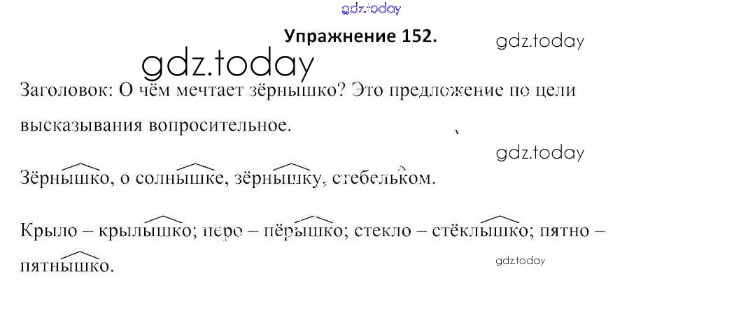 На страницах сайта gdz.today вы найдете учебный и вспомогательный материал, направленный на улучшения знаний школьной программы. ГДЗ - онлайн мир знаний Решение к части 1. Упражнения 152 Учебнику по Русскому языку для 3 класса Антипова, Верниковская Сэр-Вит 2019
