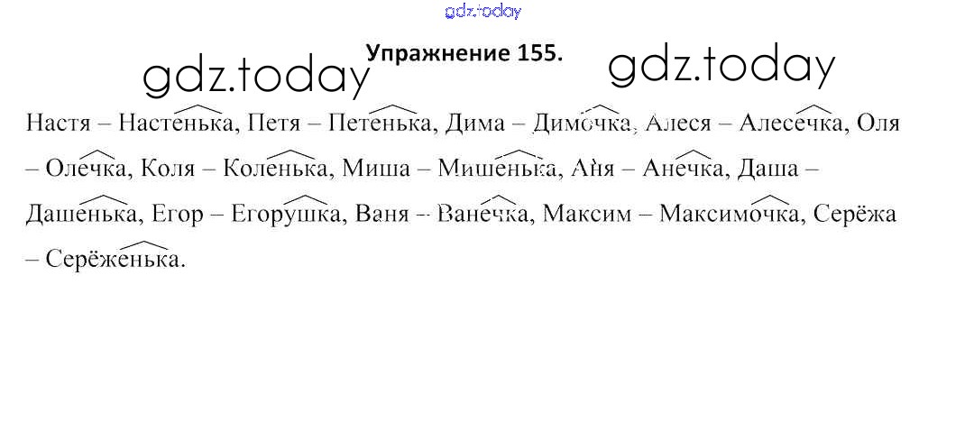 На страницах сайта gdz.today вы найдете учебный и вспомогательный материал, направленный на улучшения знаний школьной программы. ГДЗ - онлайн мир знаний Решение к части 1. Упражнения 155 Учебнику по Русскому языку для 3 класса Антипова, Верниковская Сэр-Вит 2019
