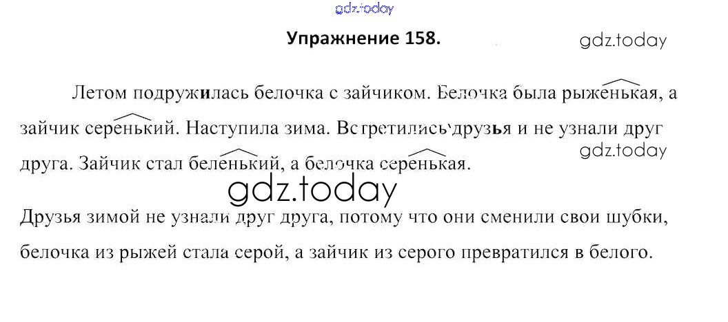 На страницах сайта gdz.today вы найдете учебный и вспомогательный материал, направленный на улучшения знаний школьной программы. ГДЗ - онлайн мир знаний Решение к части 1. Упражнения 158 Учебнику по Русскому языку для 3 класса Антипова, Верниковская Сэр-Вит 2019