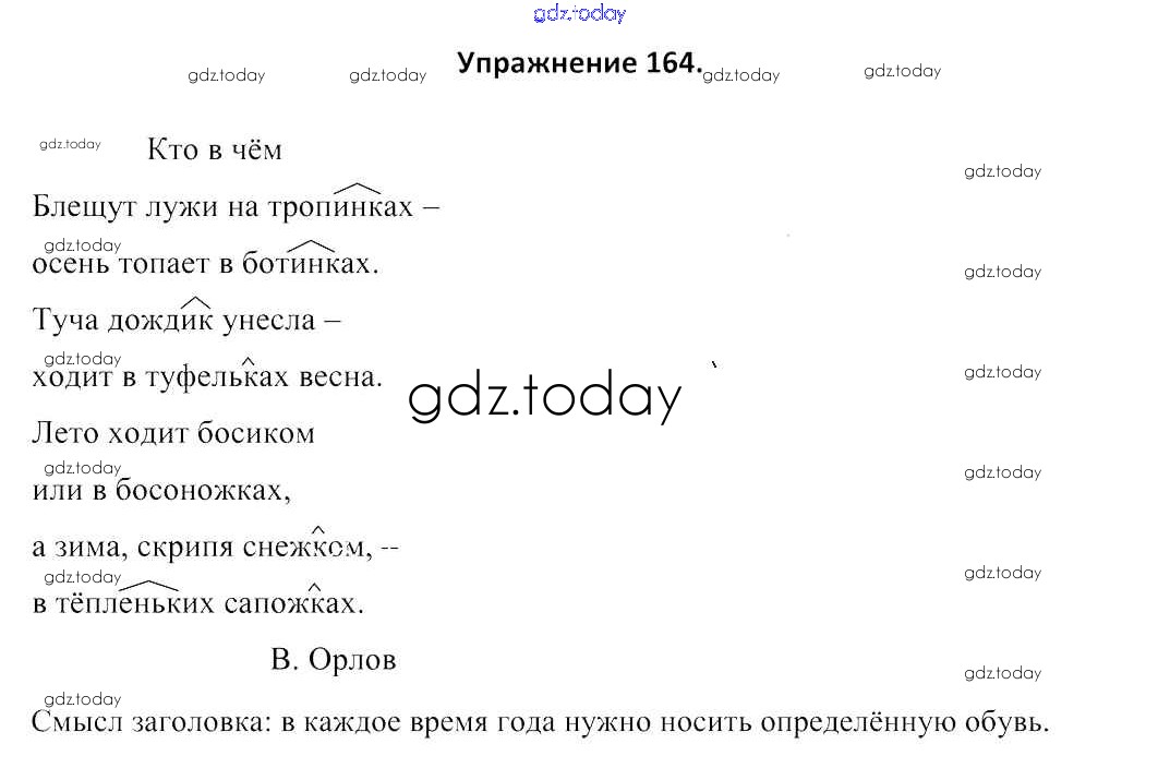 На страницах сайта gdz.today вы найдете учебный и вспомогательный материал, направленный на улучшения знаний школьной программы. ГДЗ - онлайн мир знаний Решение к части 1. Упражнения 164 Учебнику по Русскому языку для 3 класса Антипова, Верниковская Сэр-Вит 2019
