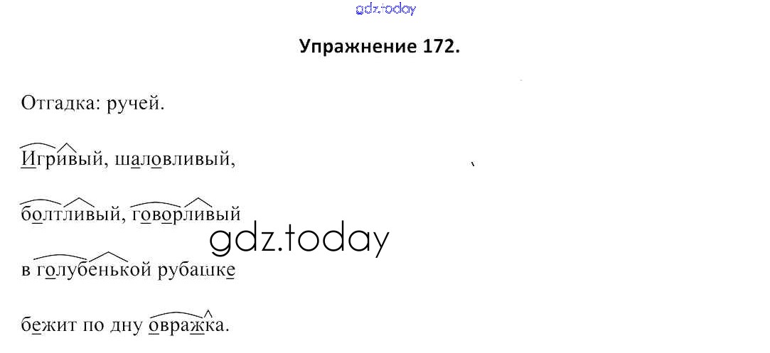 На страницах сайта gdz.today вы найдете учебный и вспомогательный материал, направленный на улучшения знаний школьной программы. ГДЗ - онлайн мир знаний Решение к части 1. Упражнения 172 Учебнику по Русскому языку для 3 класса Антипова, Верниковская Сэр-Вит 2019