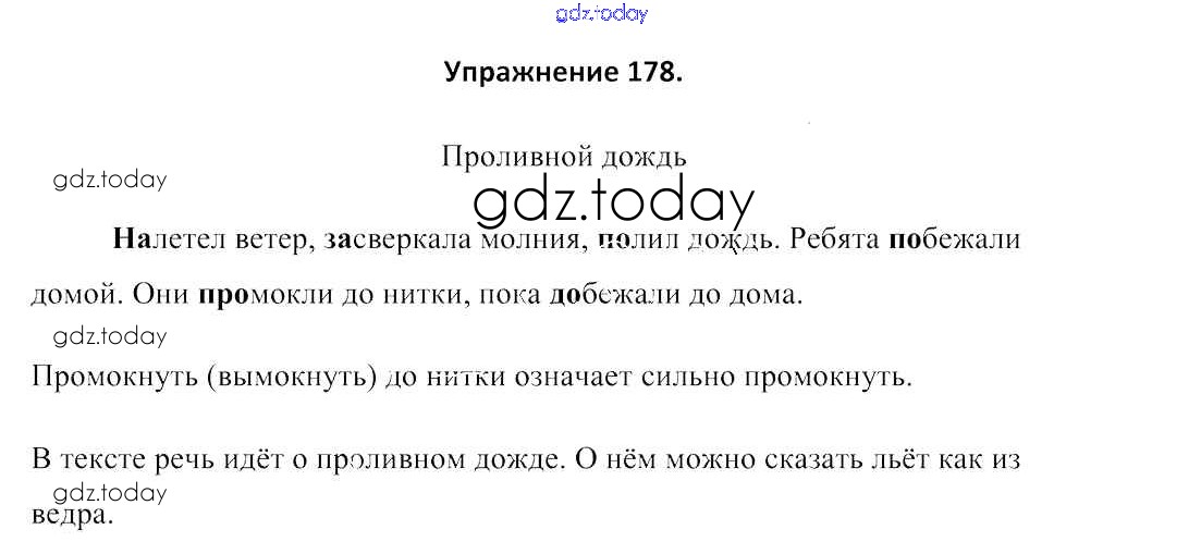 На страницах сайта gdz.today вы найдете учебный и вспомогательный материал, направленный на улучшения знаний школьной программы. ГДЗ - онлайн мир знаний Решение к части 1. Упражнения 178 Учебнику по Русскому языку для 3 класса Антипова, Верниковская Сэр-Вит 2019