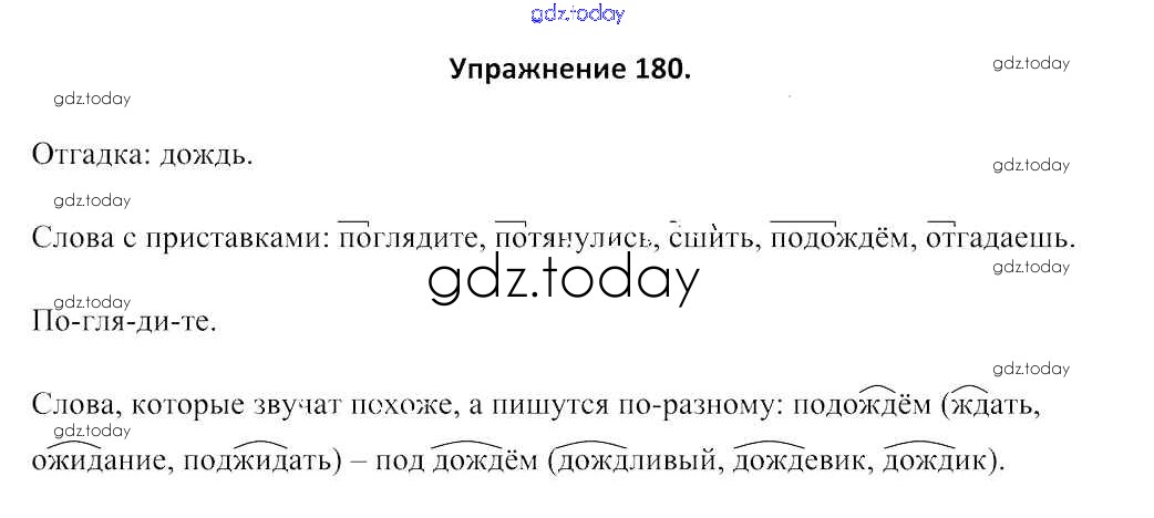 На страницах сайта gdz.today вы найдете учебный и вспомогательный материал, направленный на улучшения знаний школьной программы. ГДЗ - онлайн мир знаний Решение к части 1. Упражнения 180 Учебнику по Русскому языку для 3 класса Антипова, Верниковская Сэр-Вит 2019