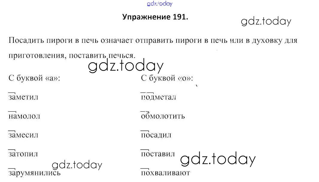 На страницах сайта gdz.today вы найдете учебный и вспомогательный материал, направленный на улучшения знаний школьной программы. ГДЗ - онлайн мир знаний Решение к части 1. Упражнения 191 Учебнику по Русскому языку для 3 класса Антипова, Верниковская Сэр-Вит 2019