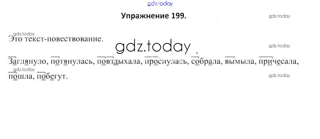 На страницах сайта gdz.today вы найдете учебный и вспомогательный материал, направленный на улучшения знаний школьной программы. ГДЗ - онлайн мир знаний Решение к части 1. Упражнения 199 Учебнику по Русскому языку для 3 класса Антипова, Верниковская Сэр-Вит 2019
