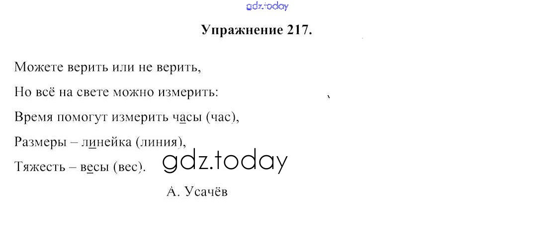 На страницах сайта gdz.today вы найдете учебный и вспомогательный материал, направленный на улучшения знаний школьной программы. ГДЗ - онлайн мир знаний Решение к части 1. Упражнения 217 Учебнику по Русскому языку для 3 класса Антипова, Верниковская Сэр-Вит 2019