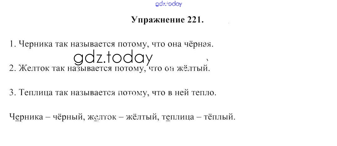 На страницах сайта gdz.today вы найдете учебный и вспомогательный материал, направленный на улучшения знаний школьной программы. ГДЗ - онлайн мир знаний Решение к части 1. Упражнения 221 Учебнику по Русскому языку для 3 класса Антипова, Верниковская Сэр-Вит 2019