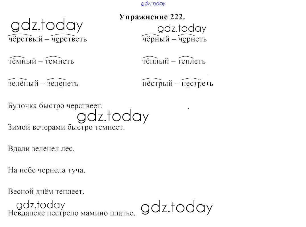 На страницах сайта gdz.today вы найдете учебный и вспомогательный материал, направленный на улучшения знаний школьной программы. ГДЗ - онлайн мир знаний Решение к части 1. Упражнения 222 Учебнику по Русскому языку для 3 класса Антипова, Верниковская Сэр-Вит 2019