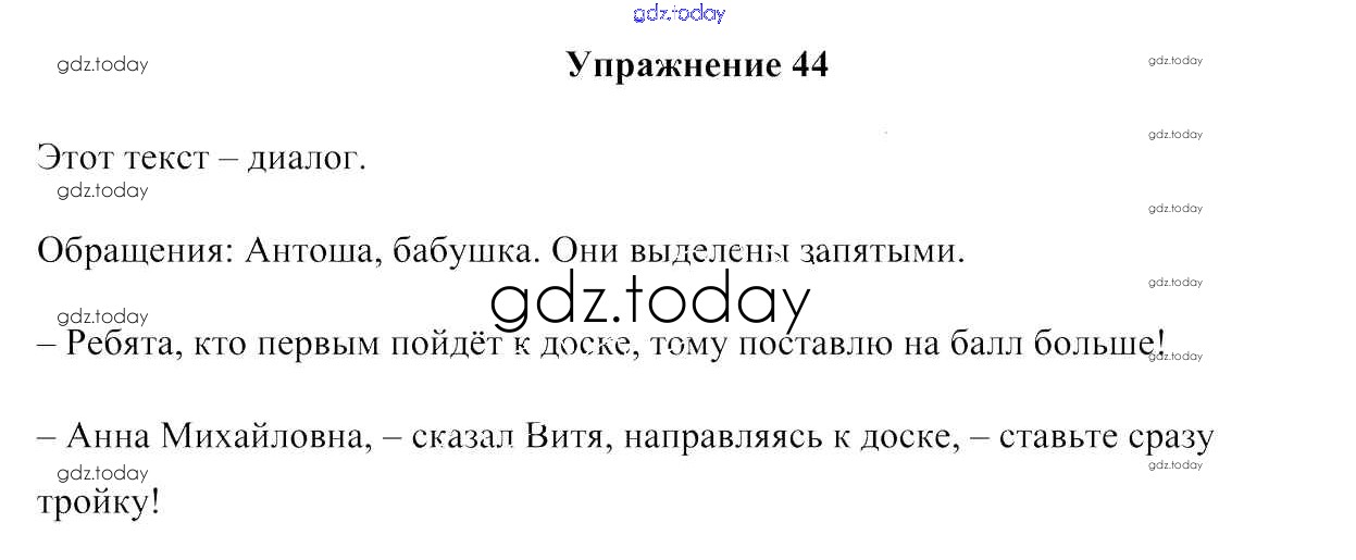 На страницах сайта gdz.today вы найдете учебный и вспомогательный материал, направленный на улучшения знаний школьной программы. ГДЗ - онлайн мир знаний Решение к части 1. Упражнения 44 Учебнику по Русскому языку для 3 класса Антипова, Верниковская Сэр-Вит 2019