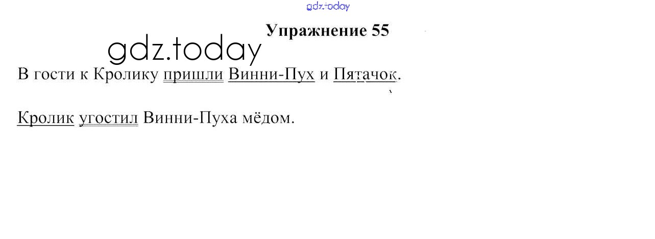 На страницах сайта gdz.today вы найдете учебный и вспомогательный материал, направленный на улучшения знаний школьной программы. ГДЗ - онлайн мир знаний Решение к части 1. Упражнения 55 Учебнику по Русскому языку для 3 класса Антипова, Верниковская Сэр-Вит 2019