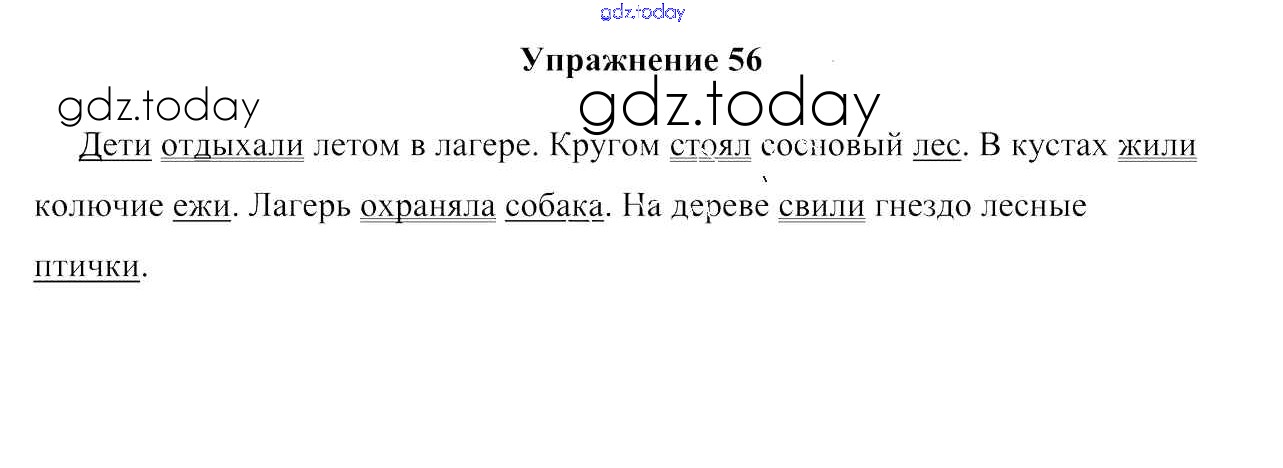 На страницах сайта gdz.today вы найдете учебный и вспомогательный материал, направленный на улучшения знаний школьной программы. ГДЗ - онлайн мир знаний Решение к части 1. Упражнения 56 Учебнику по Русскому языку для 3 класса Антипова, Верниковская Сэр-Вит 2019