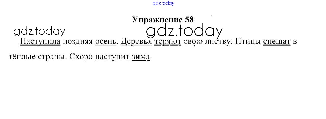 На страницах сайта gdz.today вы найдете учебный и вспомогательный материал, направленный на улучшения знаний школьной программы. ГДЗ - онлайн мир знаний Решение к части 1. Упражнения 58 Учебнику по Русскому языку для 3 класса Антипова, Верниковская Сэр-Вит 2019