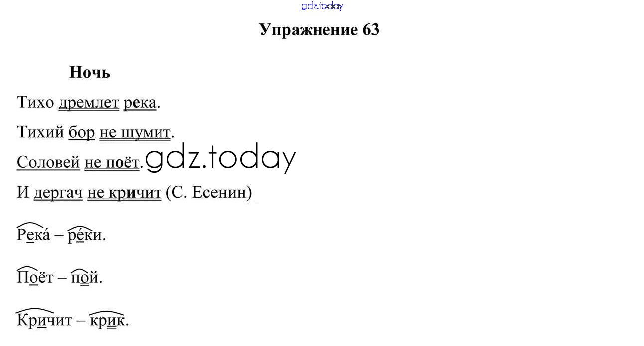 На страницах сайта gdz.today вы найдете учебный и вспомогательный материал, направленный на улучшения знаний школьной программы. ГДЗ - онлайн мир знаний Решение к части 1. Упражнения 63 Учебнику по Русскому языку для 3 класса Антипова, Верниковская Сэр-Вит 2019