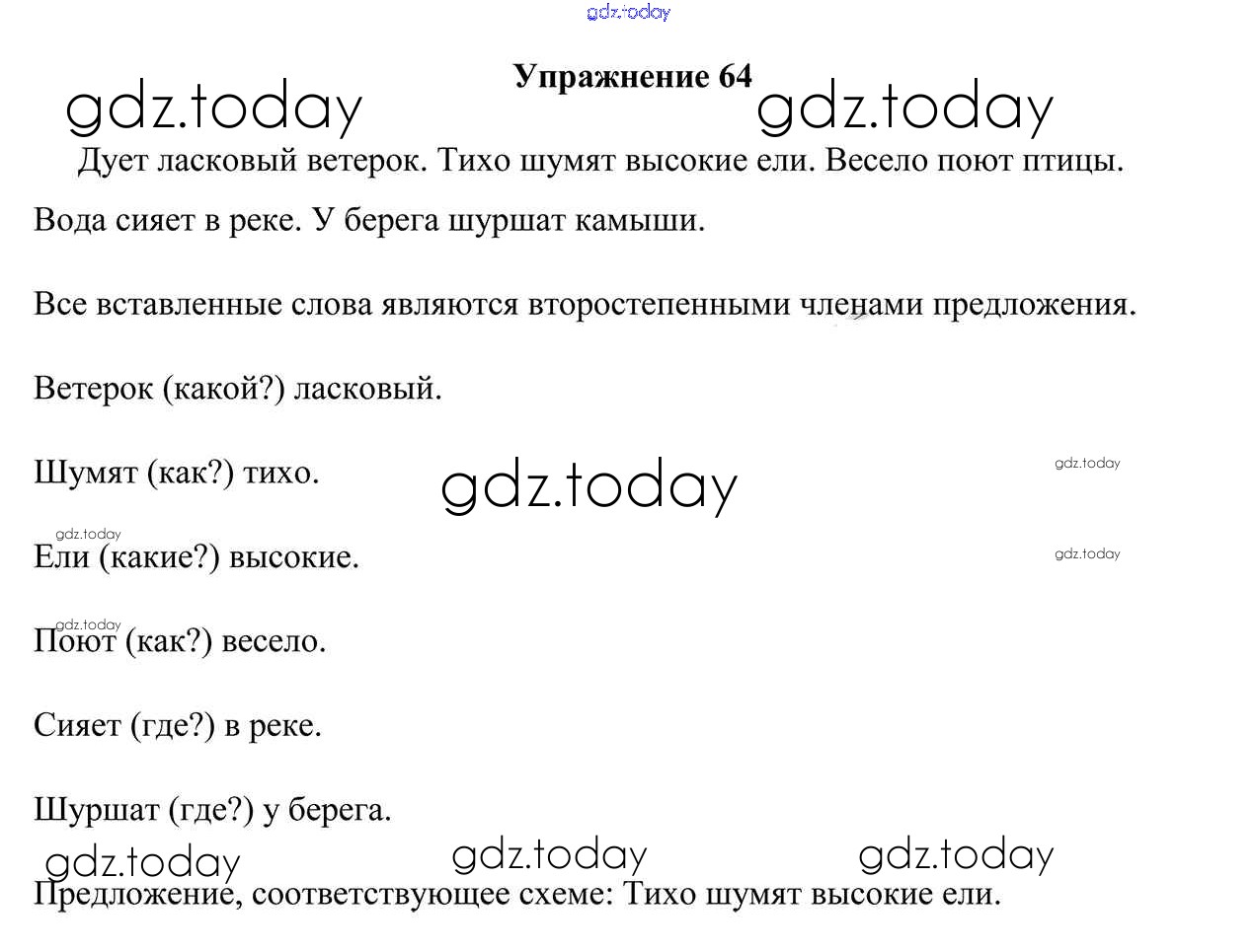 На страницах сайта gdz.today вы найдете учебный и вспомогательный материал, направленный на улучшения знаний школьной программы. ГДЗ - онлайн мир знаний Решение к части 1. Упражнения 64 Учебнику по Русскому языку для 3 класса Антипова, Верниковская Сэр-Вит 2019