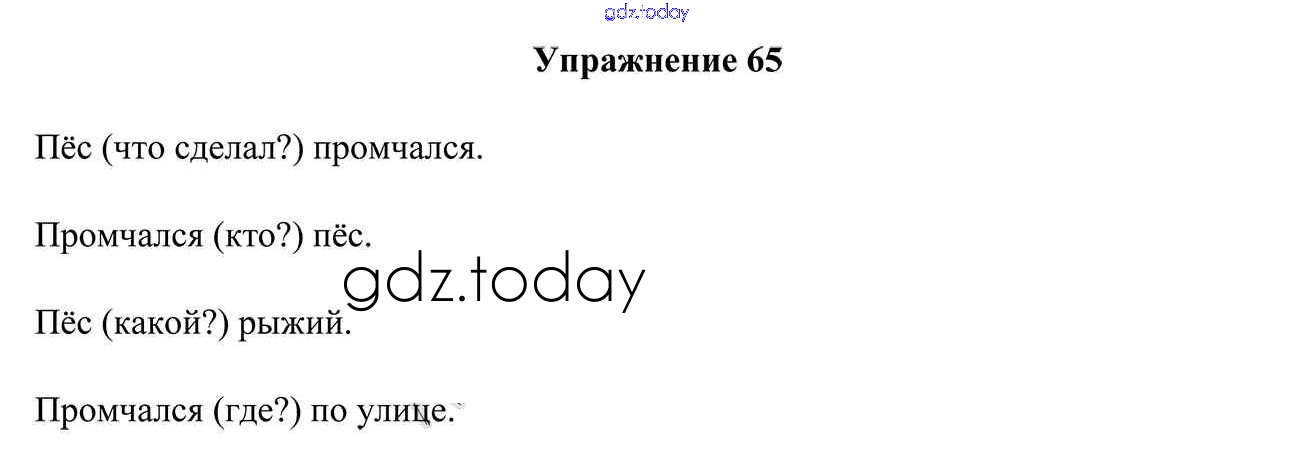 На страницах сайта gdz.today вы найдете учебный и вспомогательный материал, направленный на улучшения знаний школьной программы. ГДЗ - онлайн мир знаний Решение к части 1. Упражнения 65 Учебнику по Русскому языку для 3 класса Антипова, Верниковская Сэр-Вит 2019