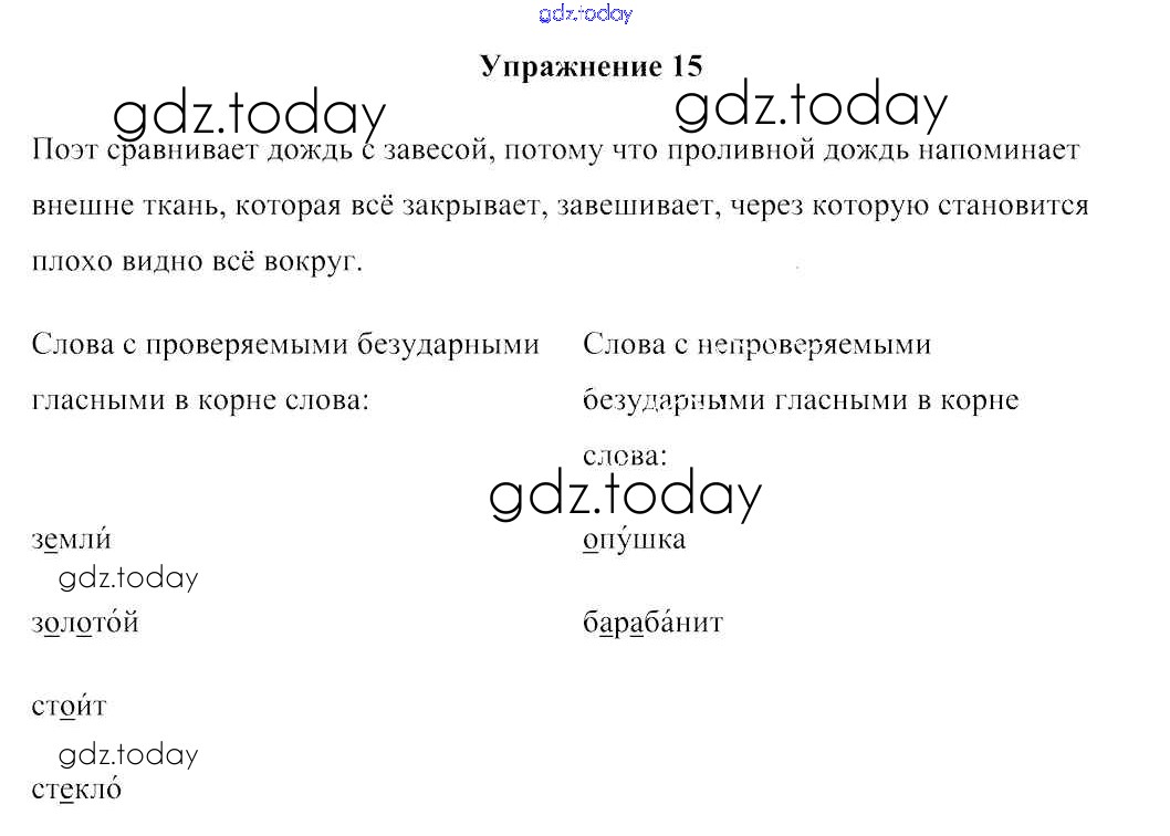 На страницах сайта gdz.today вы найдете учебный и вспомогательный материал, направленный на улучшения знаний школьной программы. ГДЗ - онлайн мир знаний Решение к части 2. Упражнения 15 Учебнику по Русскому языку для 3 класса Антипова, Верниковская Сэр-Вит 2019