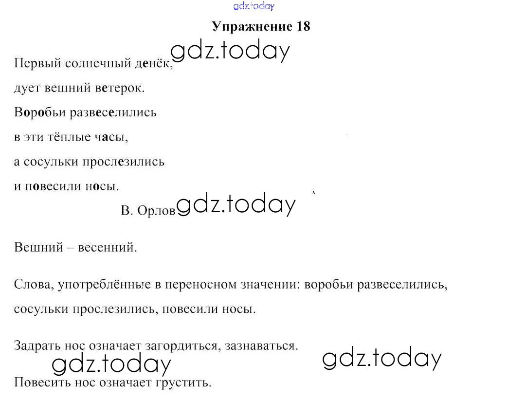 На страницах сайта gdz.today вы найдете учебный и вспомогательный материал, направленный на улучшения знаний школьной программы. ГДЗ - онлайн мир знаний Решение к части 2. Упражнения 18 Учебнику по Русскому языку для 3 класса Антипова, Верниковская Сэр-Вит 2019