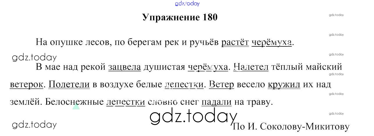 На страницах сайта gdz.today вы найдете учебный и вспомогательный материал, направленный на улучшения знаний школьной программы. ГДЗ - онлайн мир знаний Решение к части 2. Упражнения 180 Учебнику по Русскому языку для 3 класса Антипова, Верниковская Сэр-Вит 2019