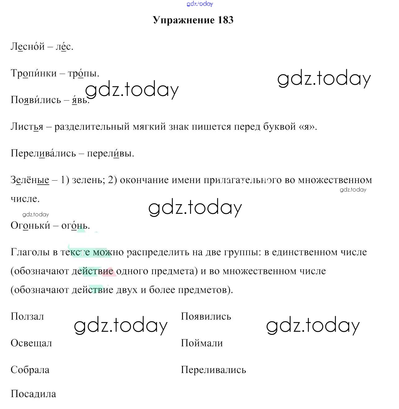 На страницах сайта gdz.today вы найдете учебный и вспомогательный материал, направленный на улучшения знаний школьной программы. ГДЗ - онлайн мир знаний Решение к части 2. Упражнения 183 Учебнику по Русскому языку для 3 класса Антипова, Верниковская Сэр-Вит 2019