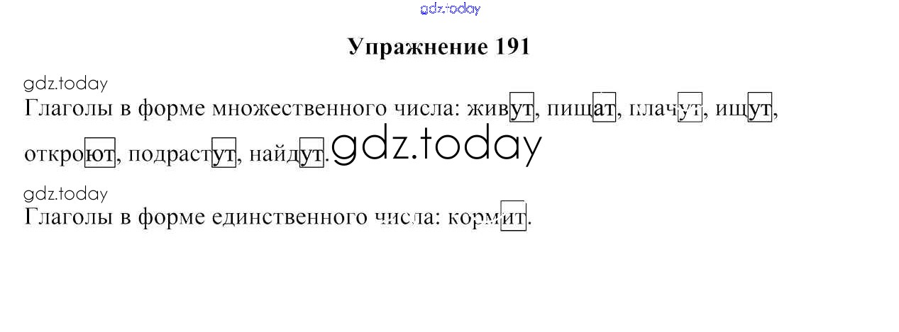 На страницах сайта gdz.today вы найдете учебный и вспомогательный материал, направленный на улучшения знаний школьной программы. ГДЗ - онлайн мир знаний Решение к части 2. Упражнения 191 Учебнику по Русскому языку для 3 класса Антипова, Верниковская Сэр-Вит 2019