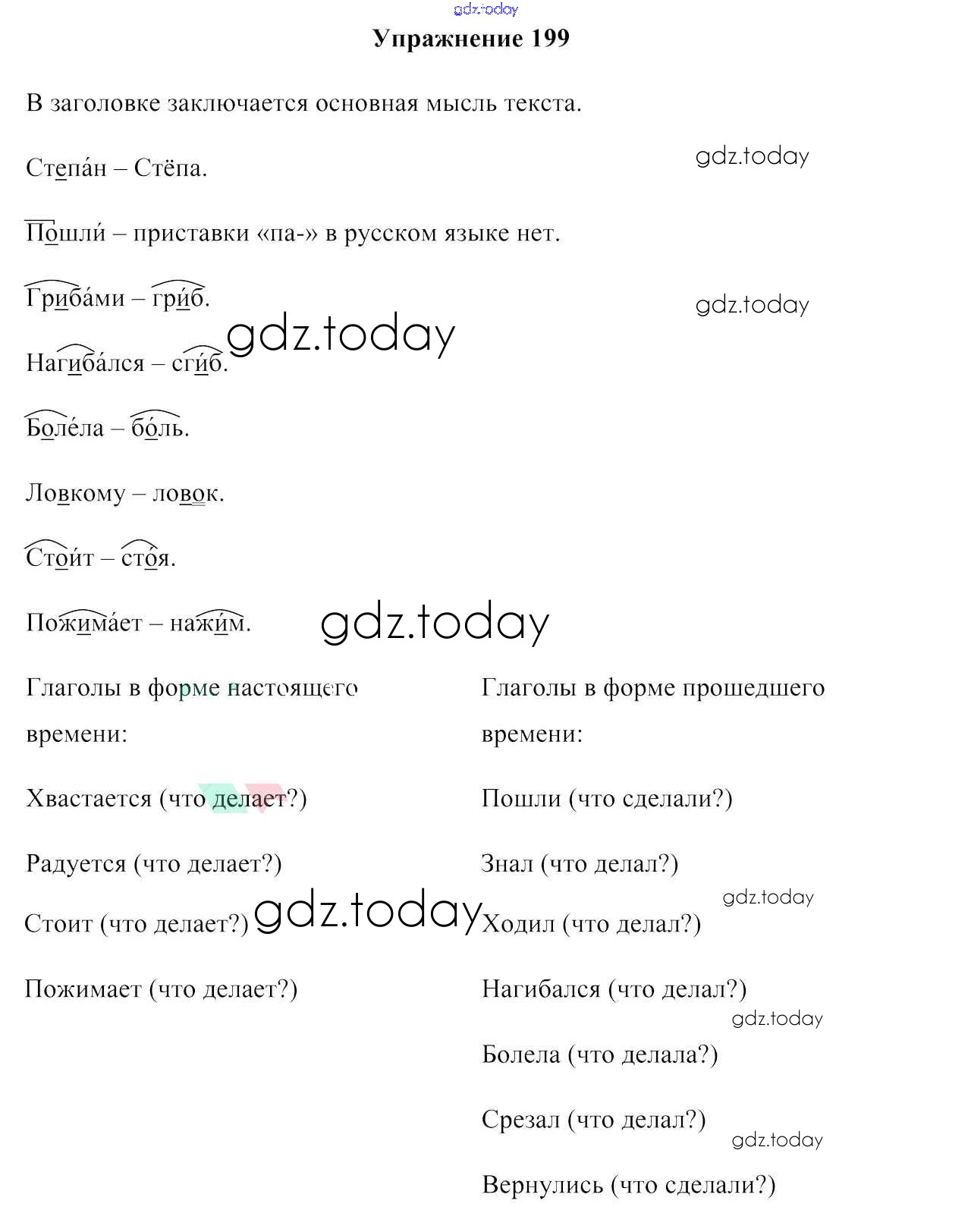 На страницах сайта gdz.today вы найдете учебный и вспомогательный материал, направленный на улучшения знаний школьной программы. ГДЗ - онлайн мир знаний Решение к части 2. Упражнения 199 Учебнику по Русскому языку для 3 класса Антипова, Верниковская Сэр-Вит 2019