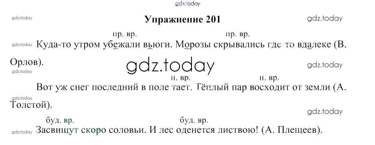 На страницах сайта gdz.today вы найдете учебный и вспомогательный материал, направленный на улучшения знаний школьной программы. ГДЗ - онлайн мир знаний Решение к части 2. Упражнения 201 Учебнику по Русскому языку для 3 класса Антипова, Верниковская Сэр-Вит 2019