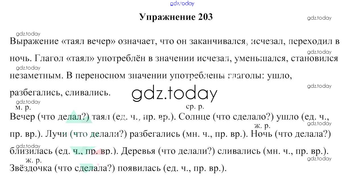 На страницах сайта gdz.today вы найдете учебный и вспомогательный материал, направленный на улучшения знаний школьной программы. ГДЗ - онлайн мир знаний Решение к части 2. Упражнения 203 Учебнику по Русскому языку для 3 класса Антипова, Верниковская Сэр-Вит 2019