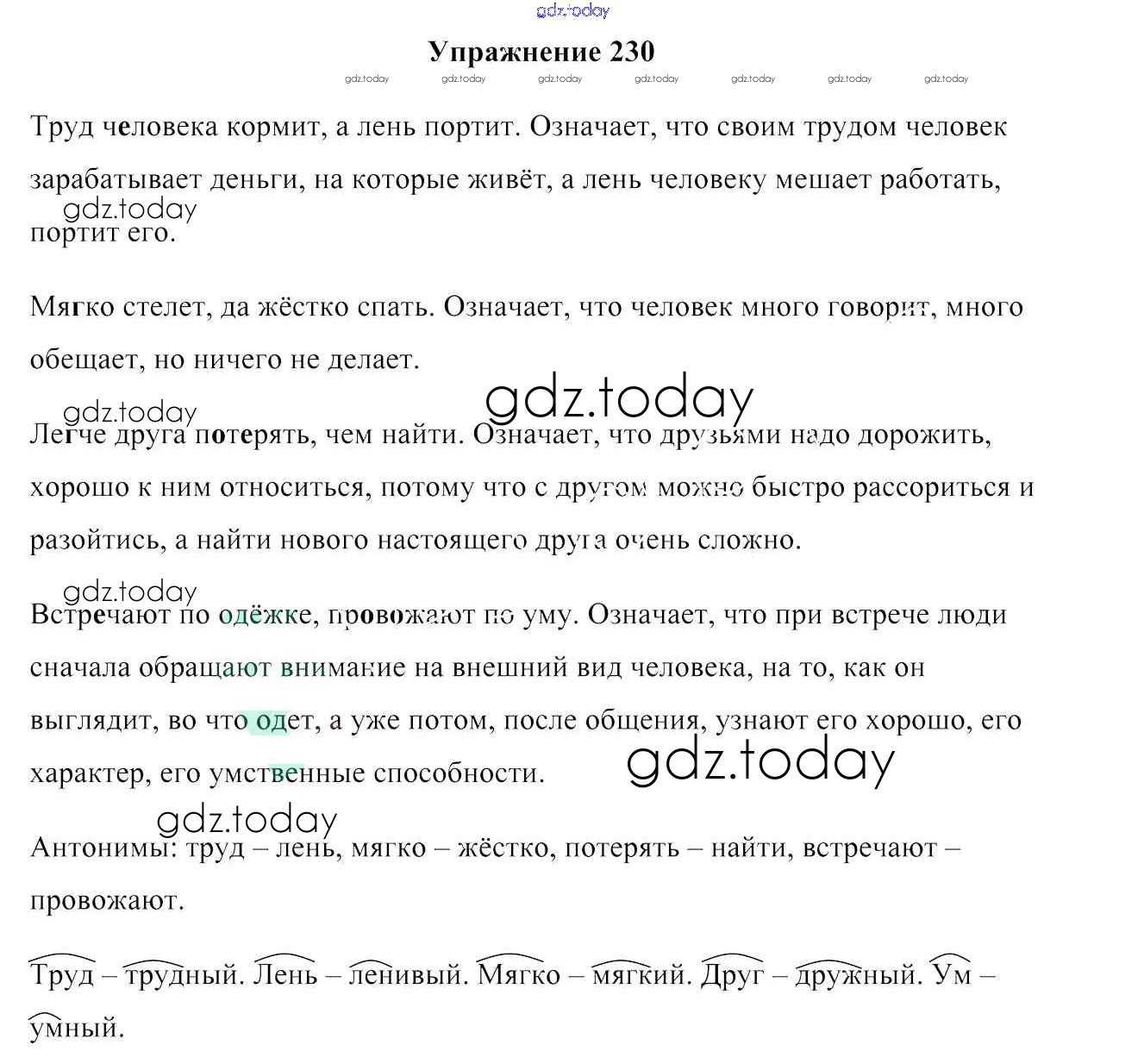 На страницах сайта gdz.today вы найдете учебный и вспомогательный материал, направленный на улучшения знаний школьной программы. ГДЗ - онлайн мир знаний Решение к части 2. Упражнения 230 Учебнику по Русскому языку для 3 класса Антипова, Верниковская Сэр-Вит 2019