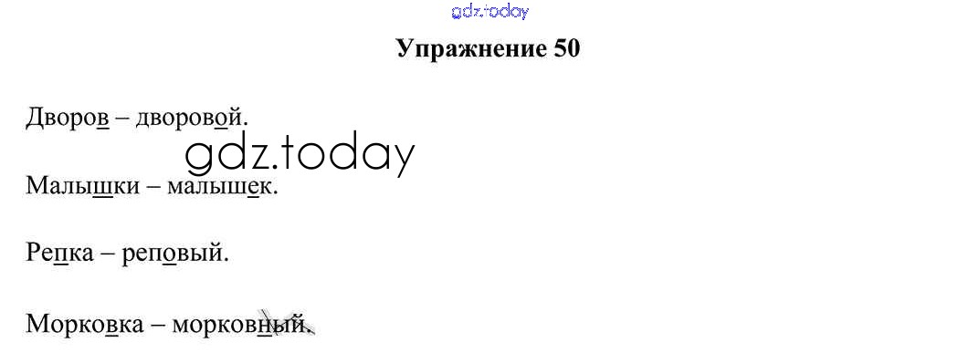 На страницах сайта gdz.today вы найдете учебный и вспомогательный материал, направленный на улучшения знаний школьной программы. ГДЗ - онлайн мир знаний Решение к части 2. Упражнения 50 Учебнику по Русскому языку для 3 класса Антипова, Верниковская Сэр-Вит 2019